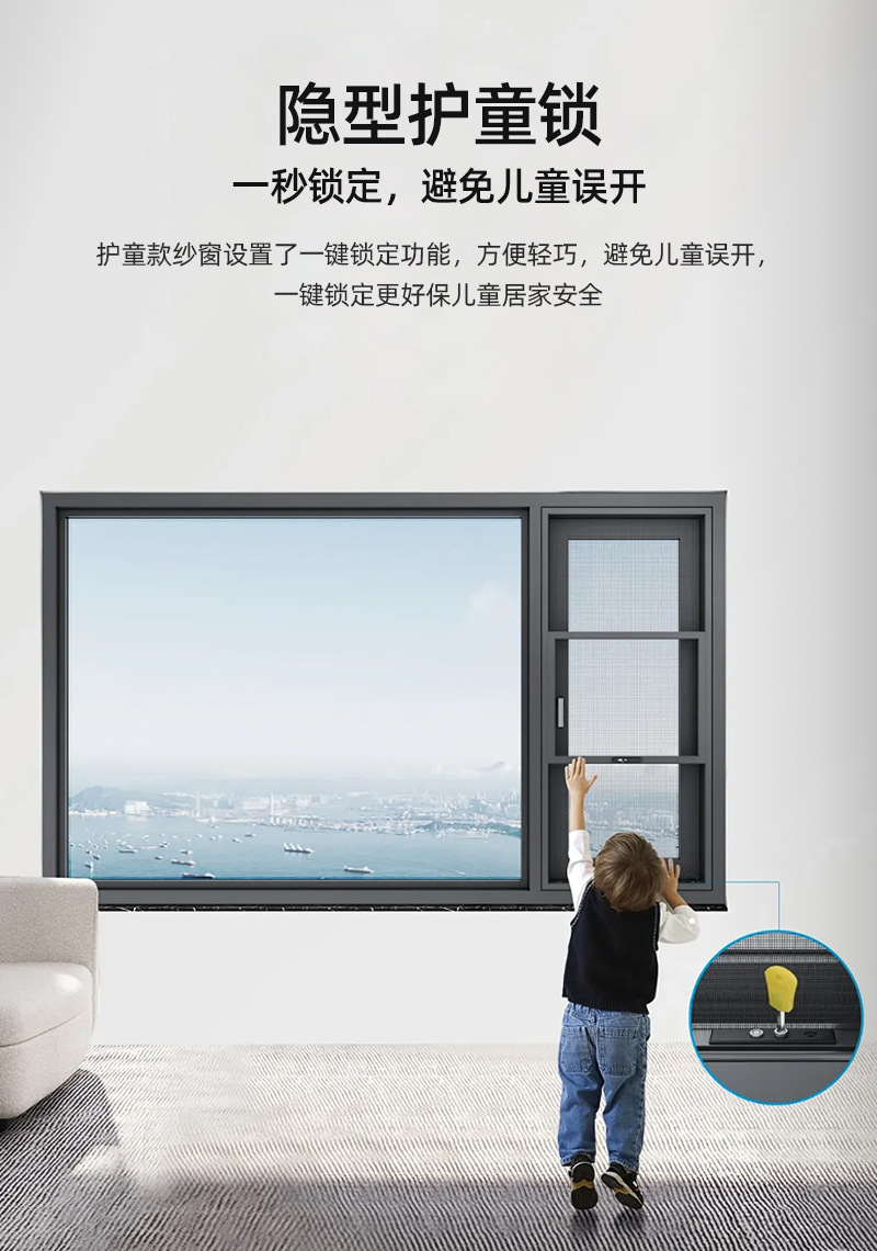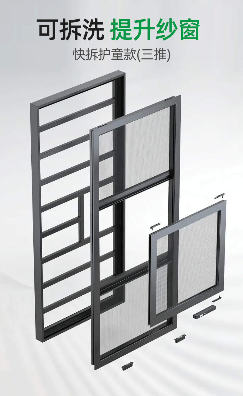 提升纱窗快拆款儿童防护纱窗上推下拉外推窗防蚊纱窗源头厂家批发