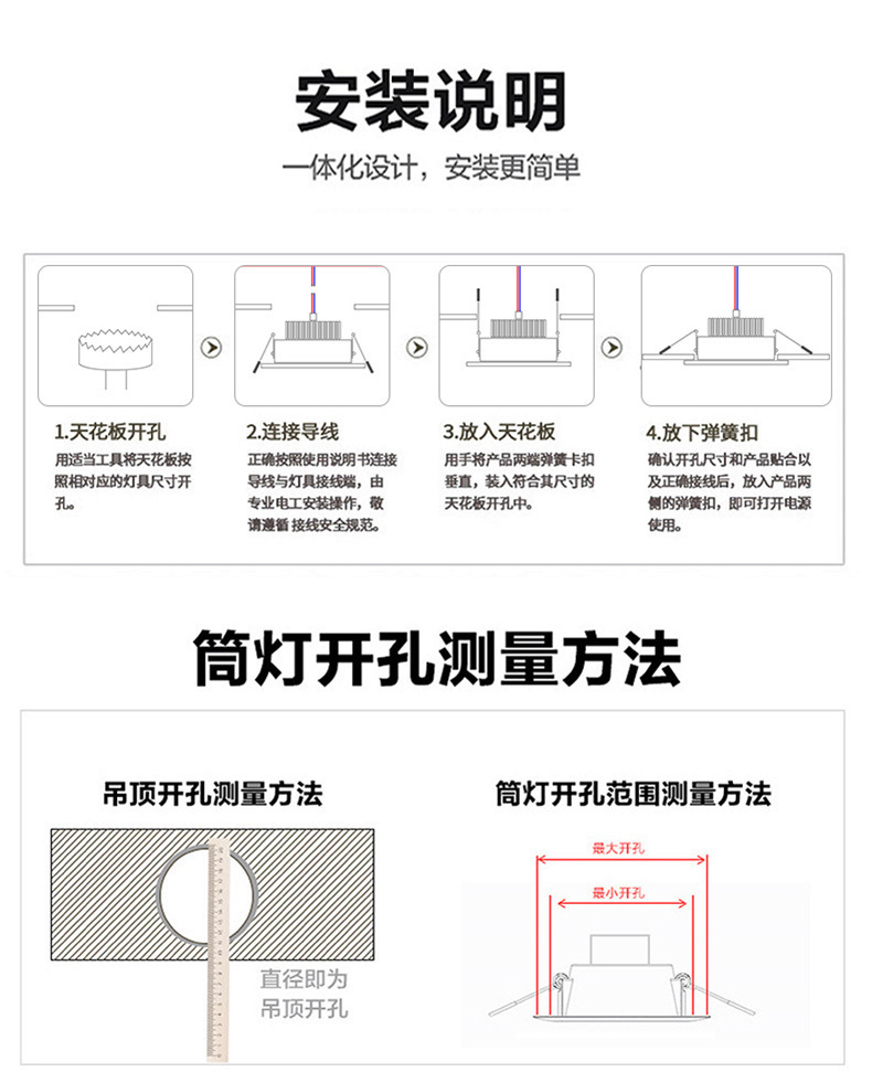 嵌入式led天花灯塑料筒灯75开孔一体化射灯5W卧室家用节能超亮