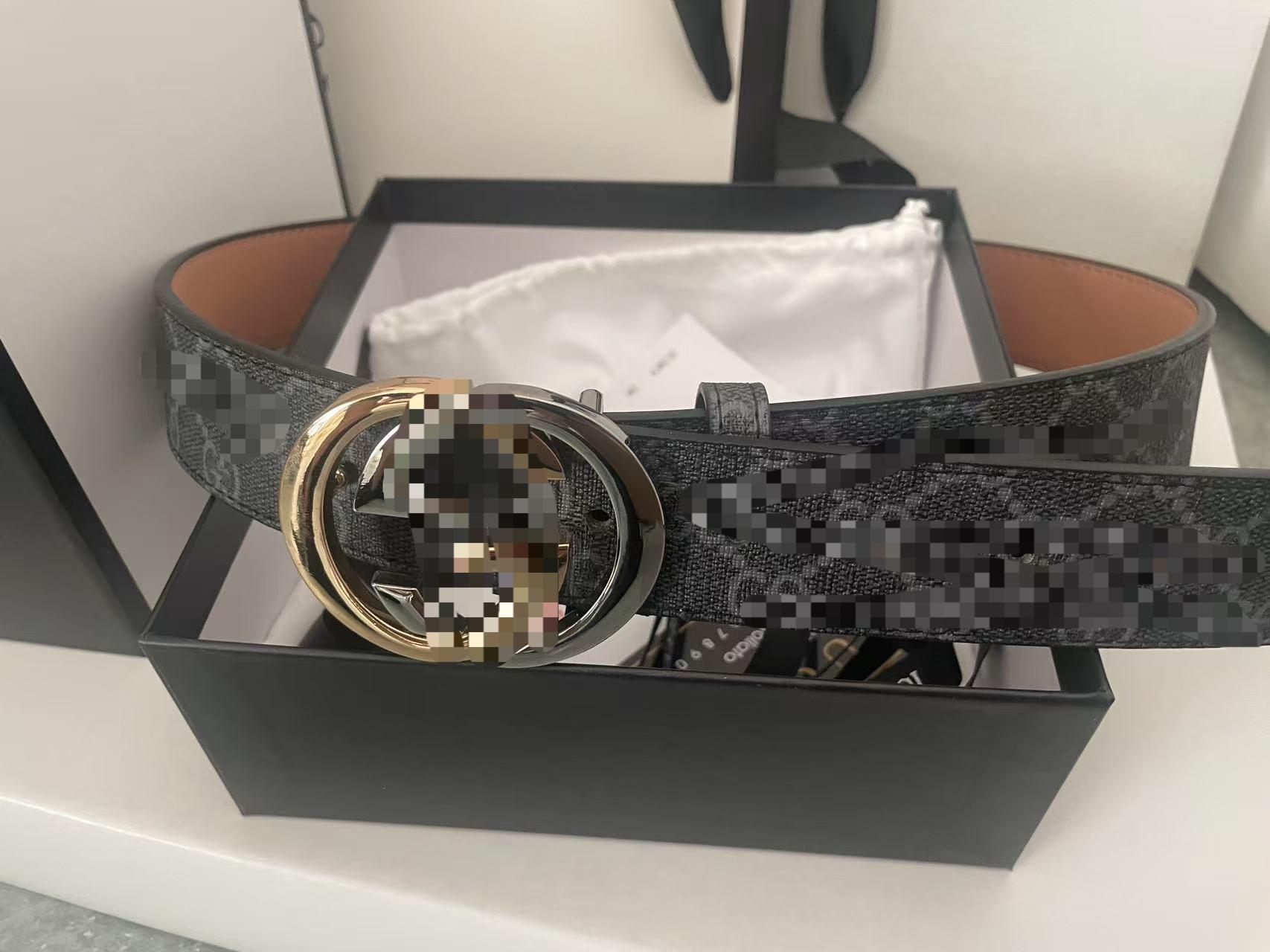 厂家批发百搭金银双G布纹男士腰带青年学生韩版装饰手工制作皮带