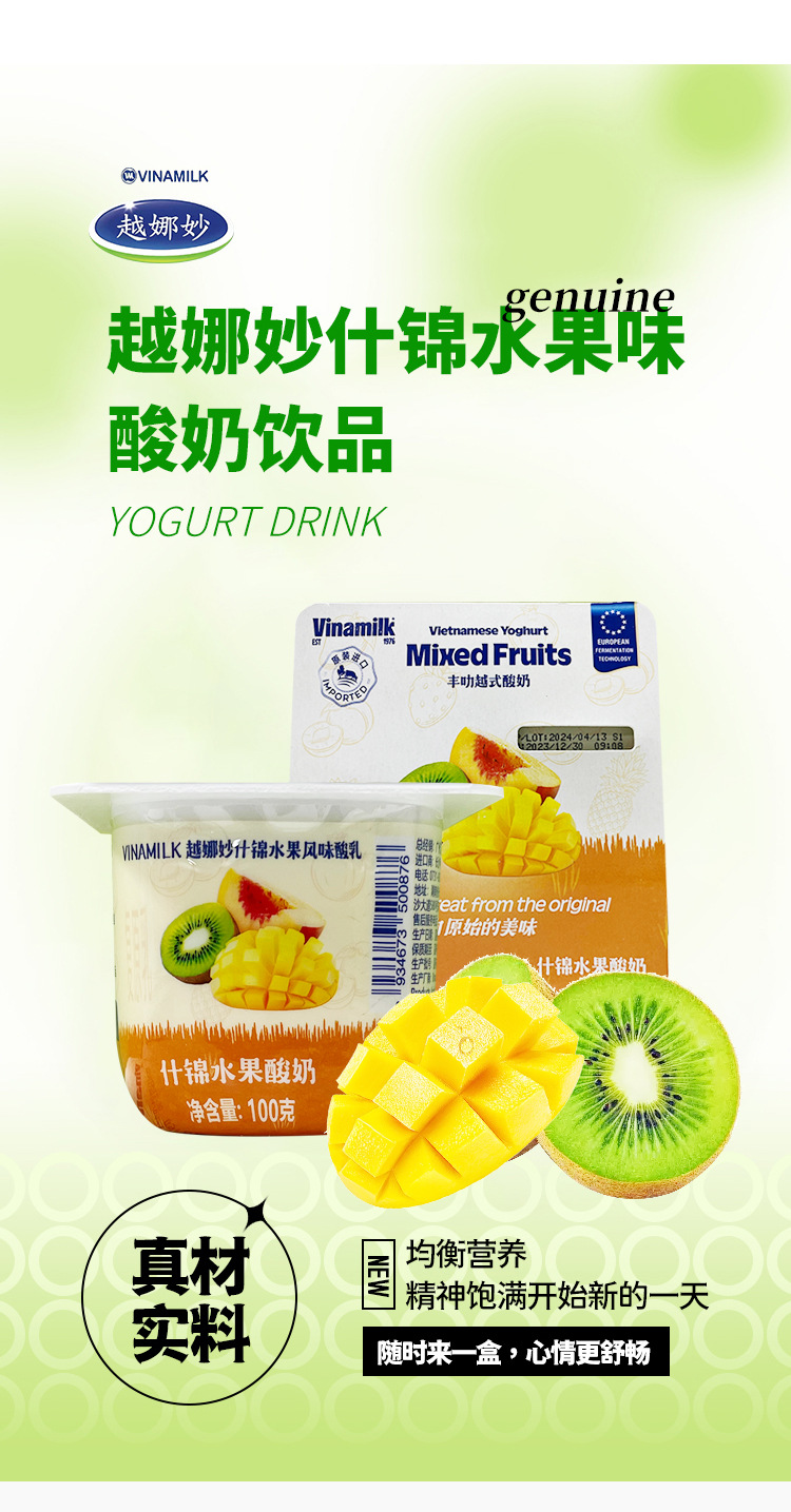 12杯装Vinamilk越娜妙越南进口酸奶杯什锦水果酸奶乳制品冷链运输