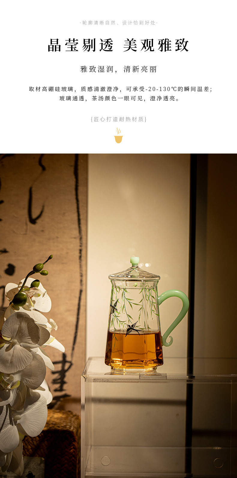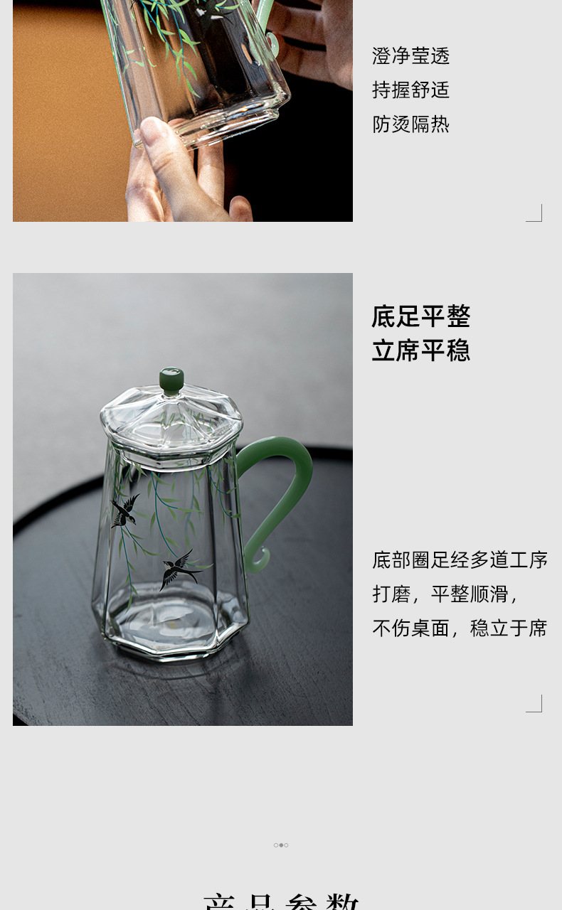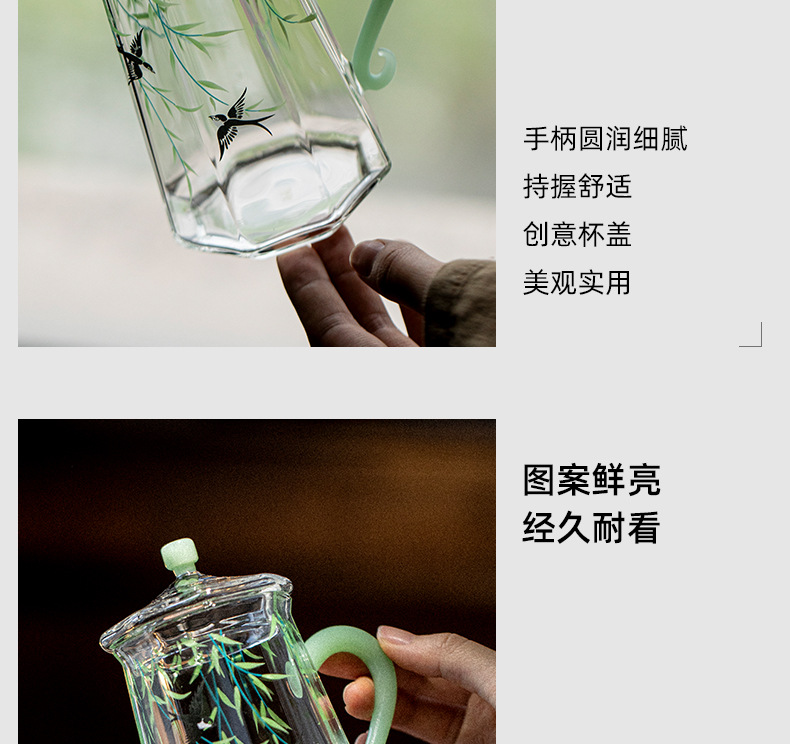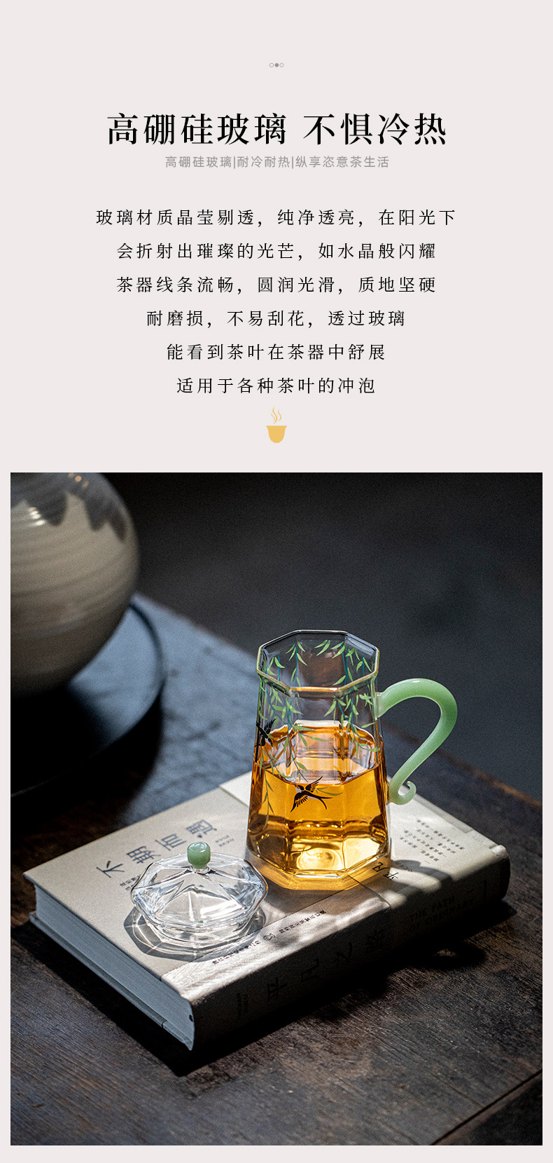 高硼硅玻璃茶杯带盖子办公室手把水杯高颜值花茶杯子不烫手
