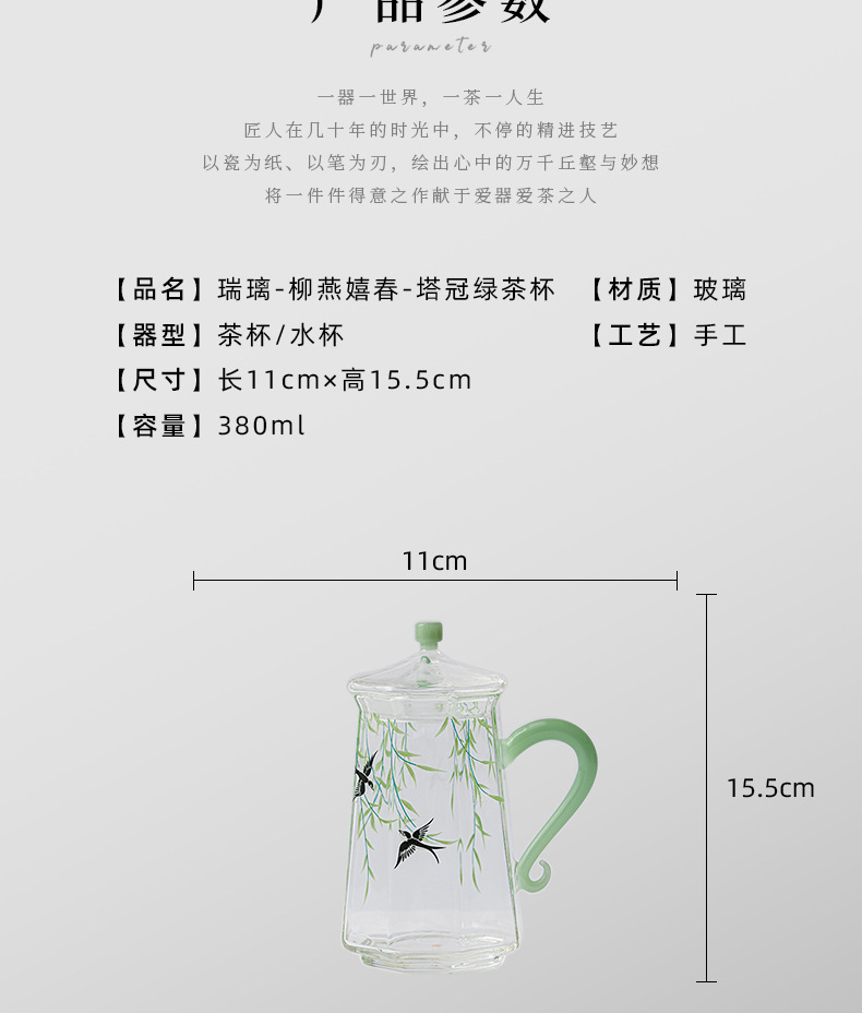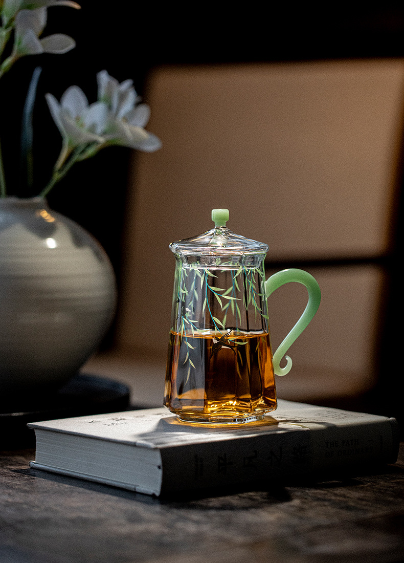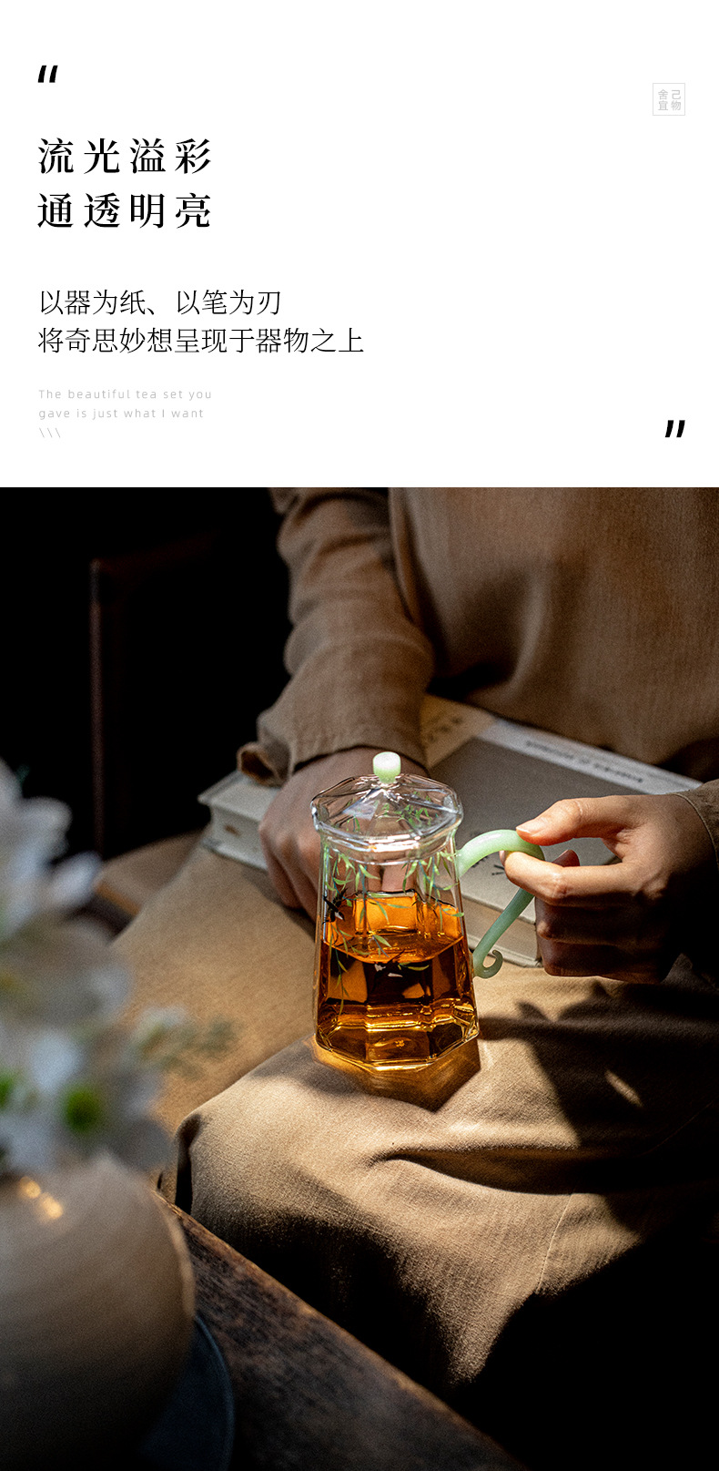 高硼硅玻璃茶杯带盖子办公室手把水杯高颜值花茶杯子不烫手