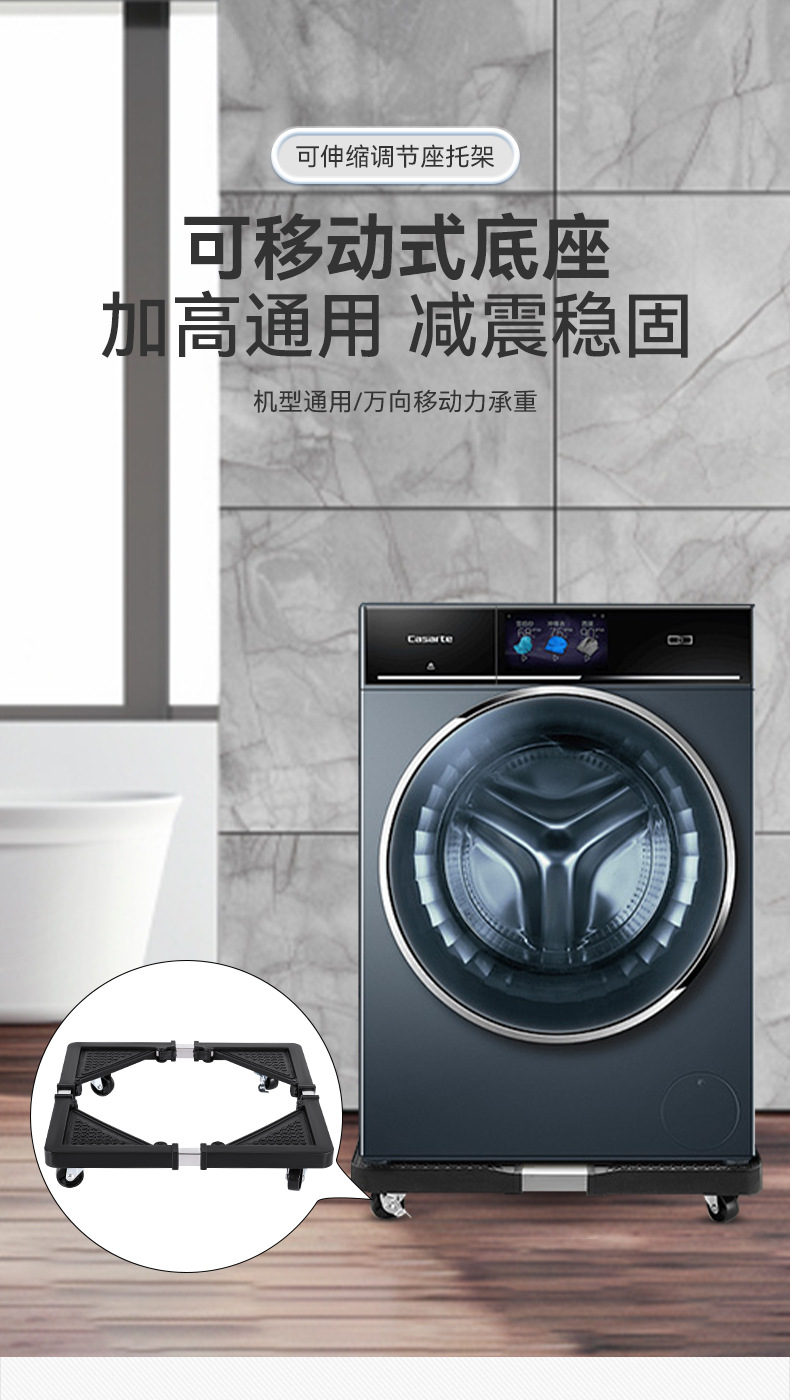 可伸缩调节洗衣机底座托架移动万向轮垫高支架防水防震固定脚架