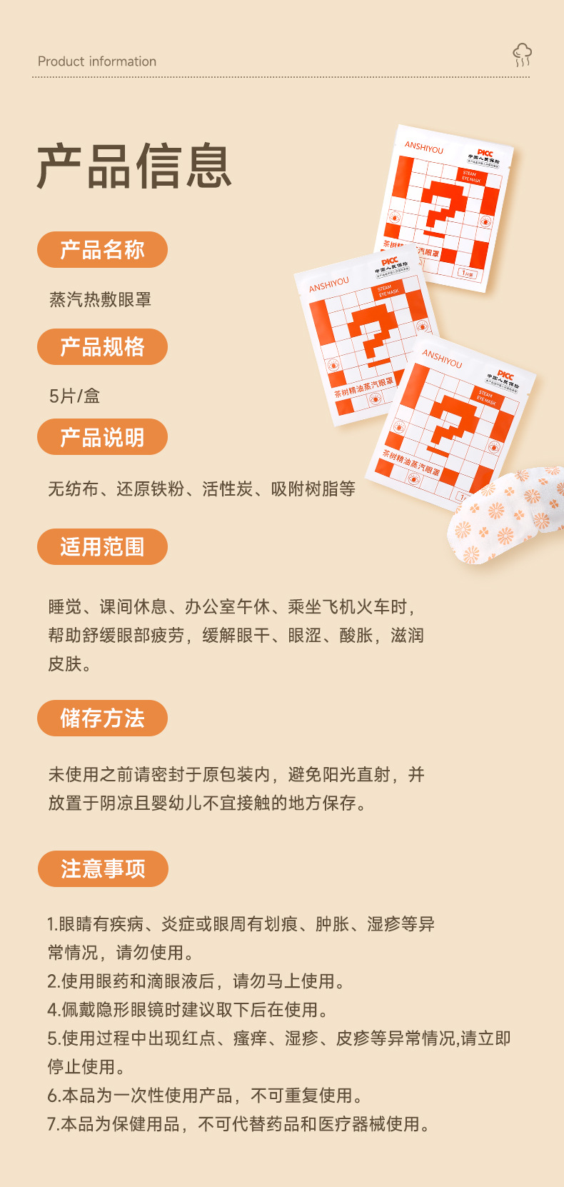 茶树精油蒸汽眼罩热敷缓解眼部疲劳眼干护眼学生一次性遮光眼护目