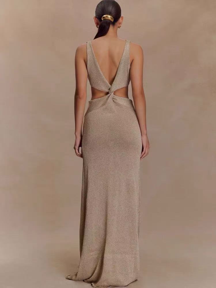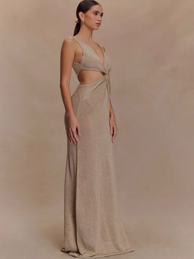 2025新款设计跨境欧美性感扭结背心长裙金银线春夏v领,批发价,价格:52,厂家直销,2025新款设计跨境欧美性感扭结背心长裙金银线春夏v领,免费拿样。