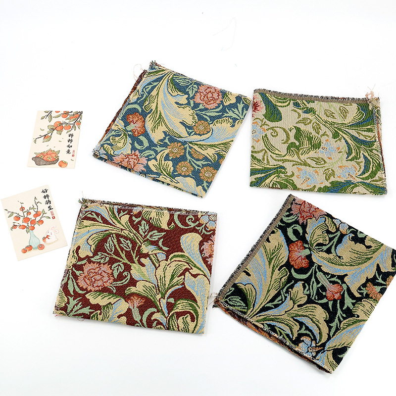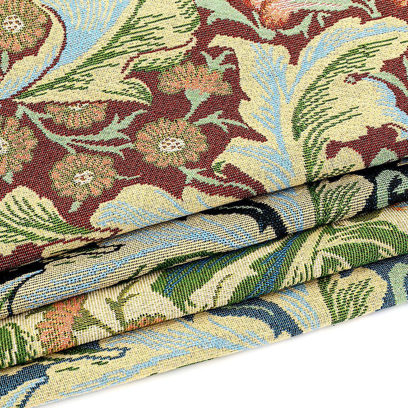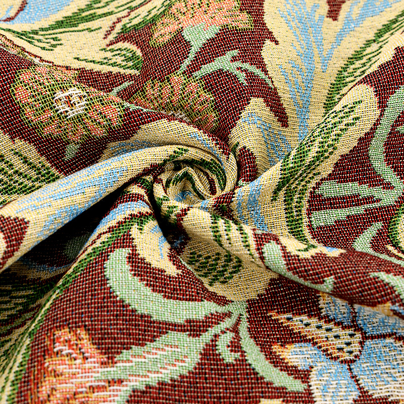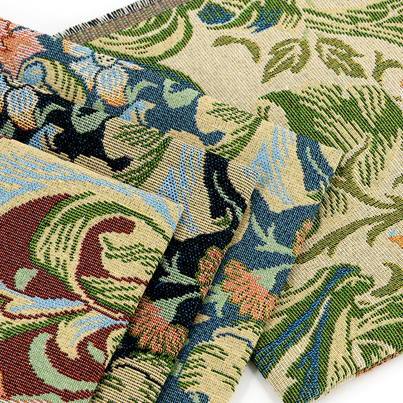 新品莫里斯花提花面料服装箱包鞋面抱枕用布料涤棉挂毯定 制批发