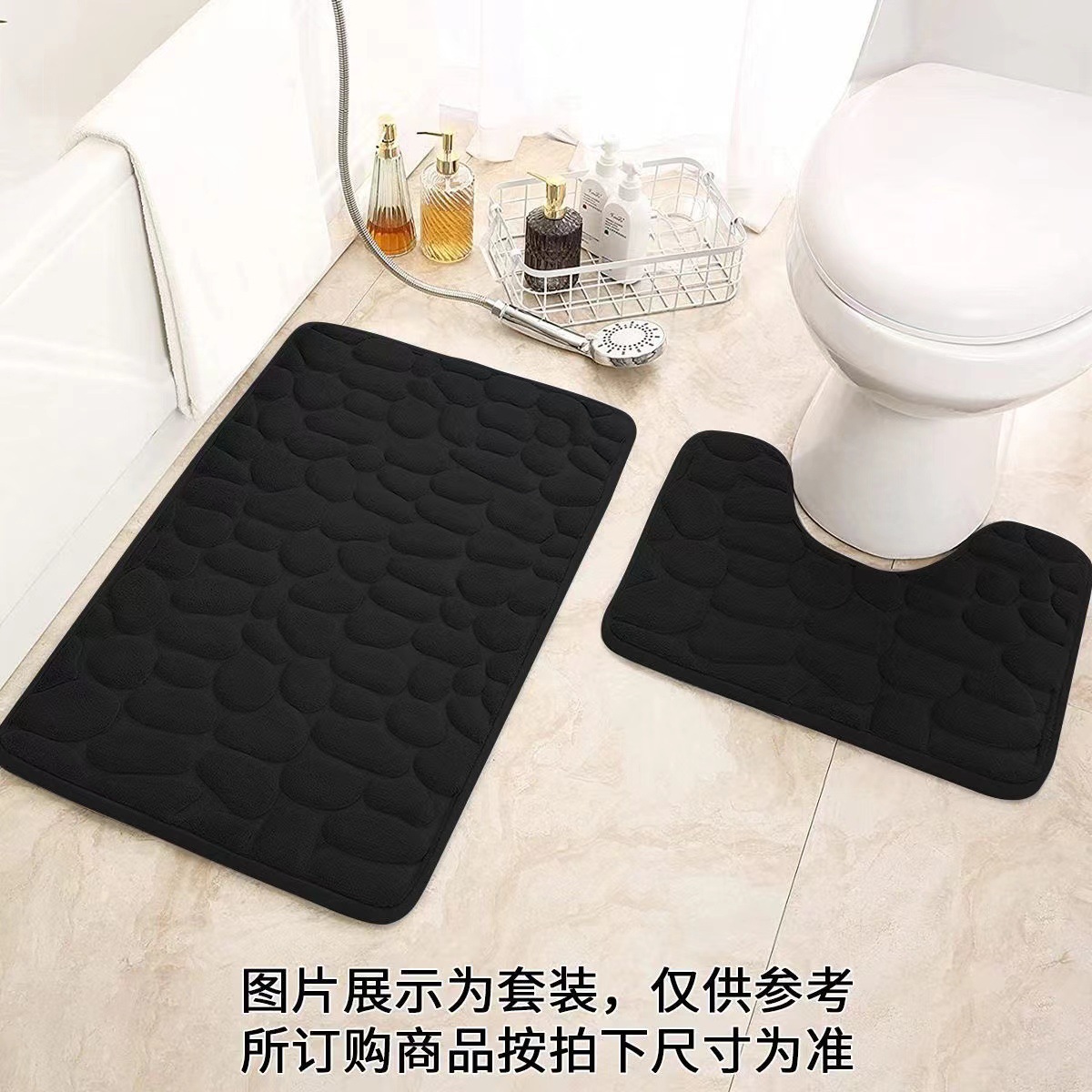 跨境鹅卵石压花珊瑚绒马桶u型三件套吸水防滑地垫浴室卫生间脚垫