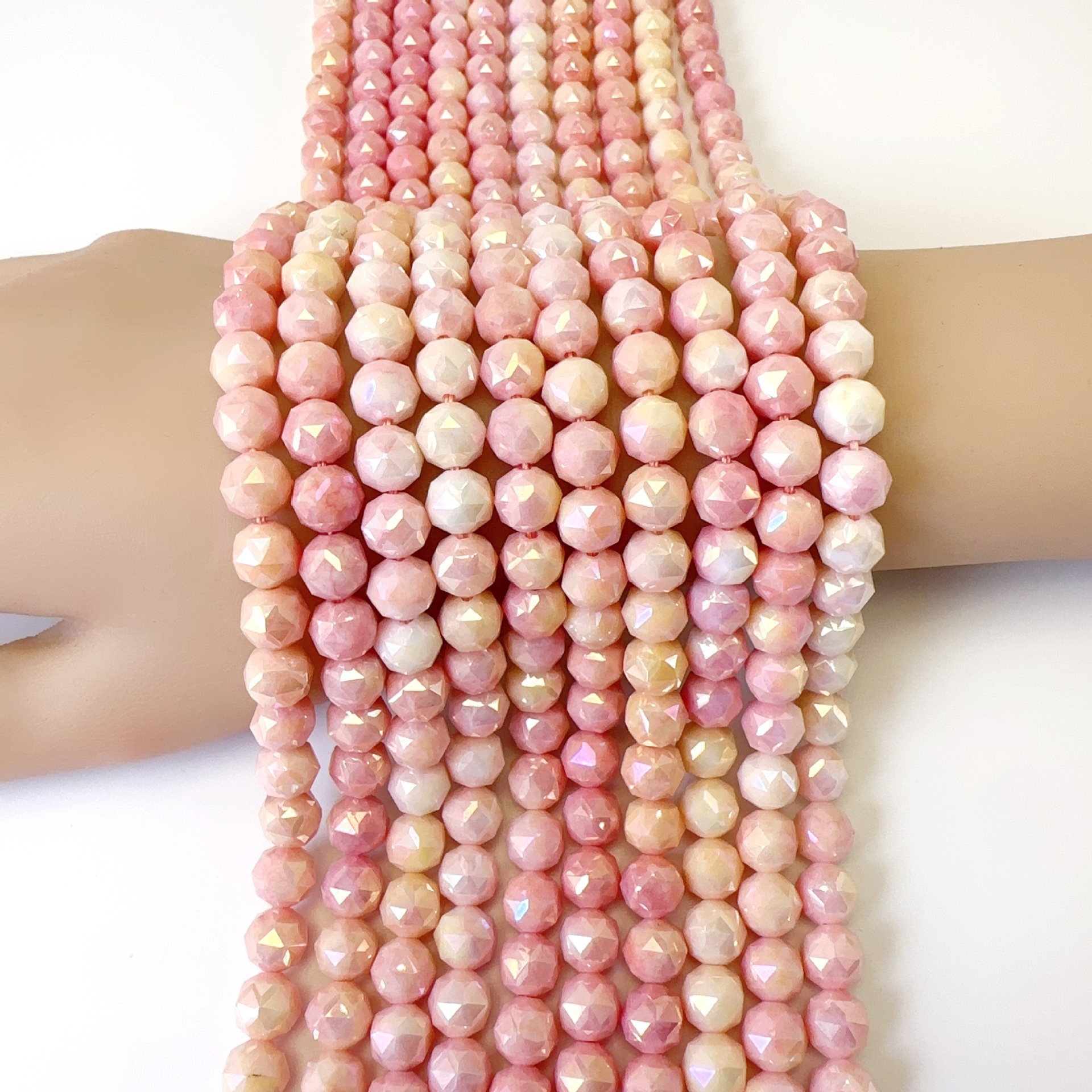 渐变色玻璃珠散珠8mm DIY手工串珠 热销散珠配件