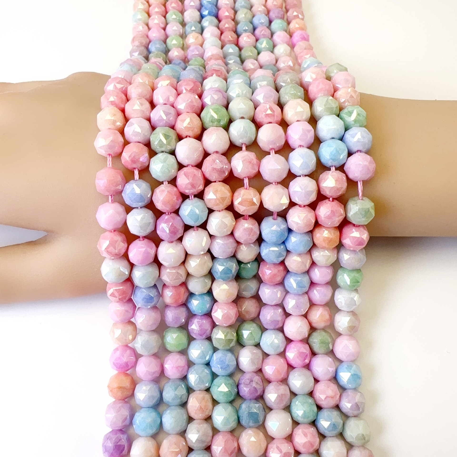 8mm花球马卡龙色水染玉碎琉璃珠diy手工串珠饰品散珠配件玻璃珠