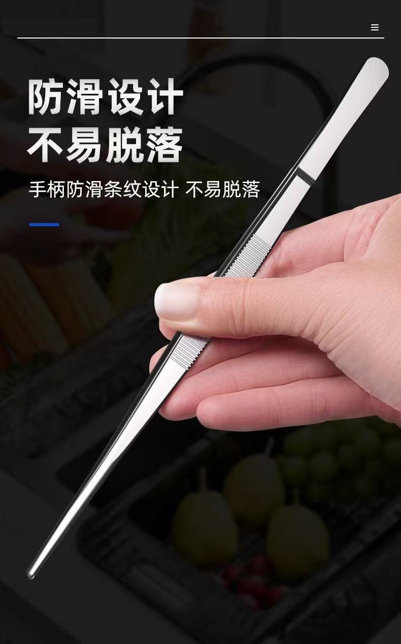 不锈钢韩式烧烤夹日式BBQ烤肉镊子12英寸料理食物夹长夹子批发