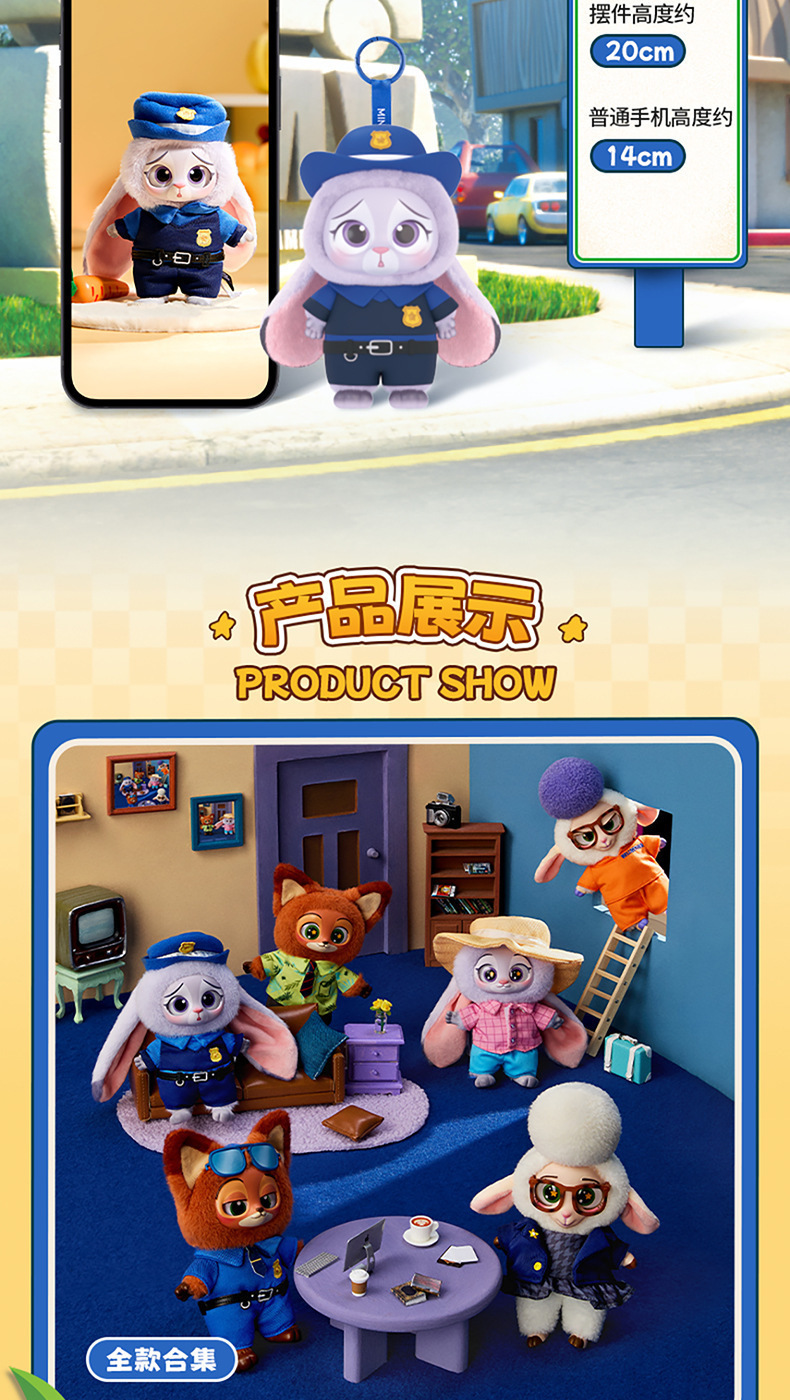 疯狂.动物城全系列6款搪胶毛绒玩偶潮玩盲盒公仔挂件背包挂饰批发