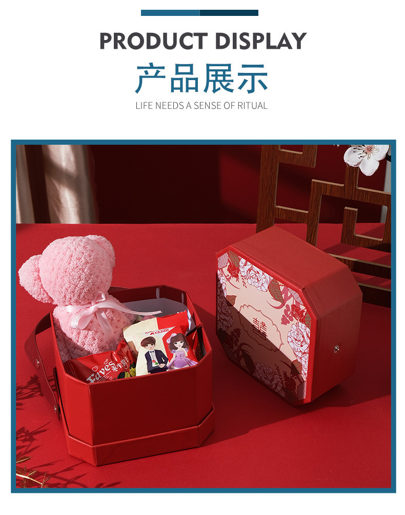 中式喜糖盒空盒八角喜字伴手礼盒包装礼盒结婚婚礼婚庆用品批发