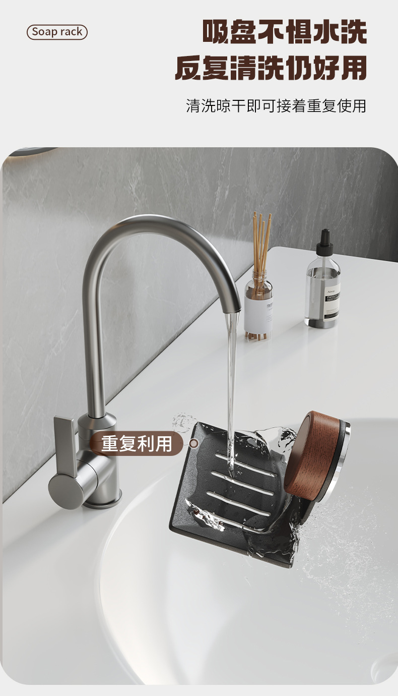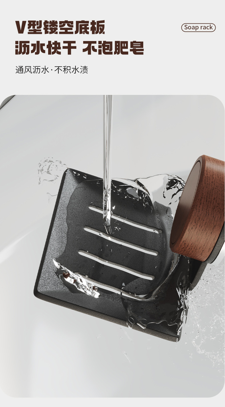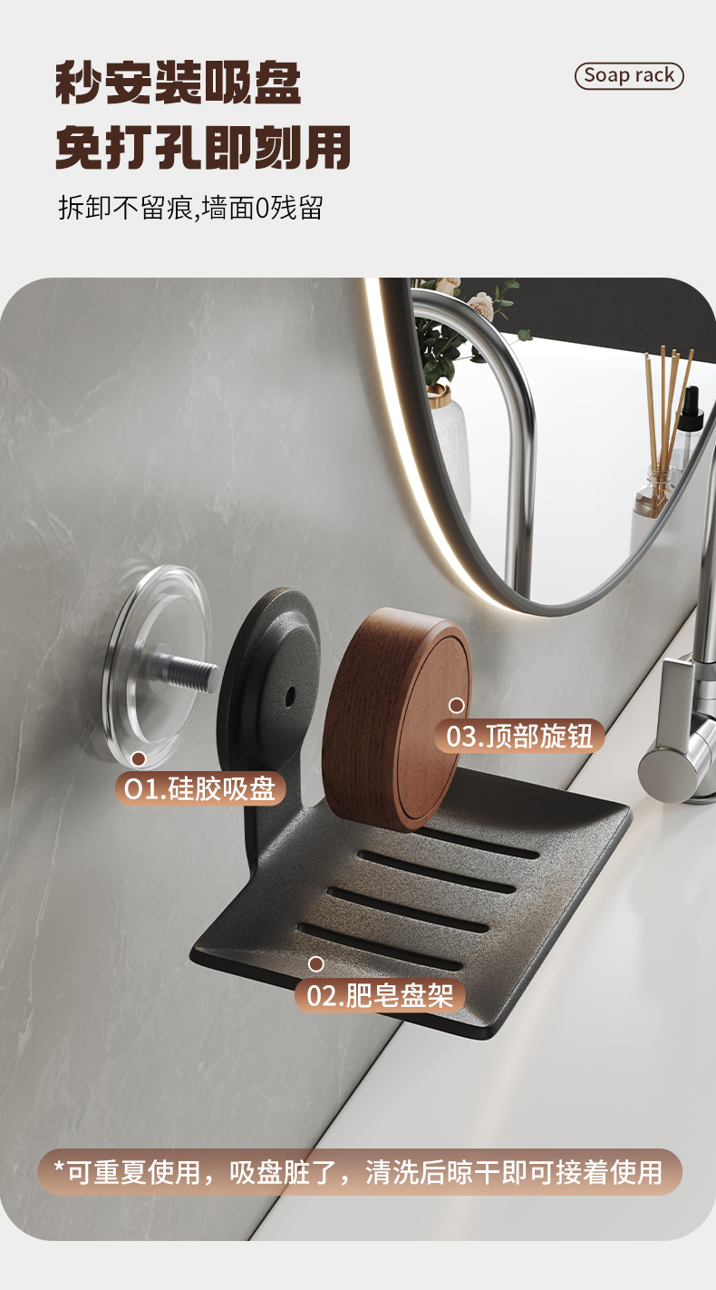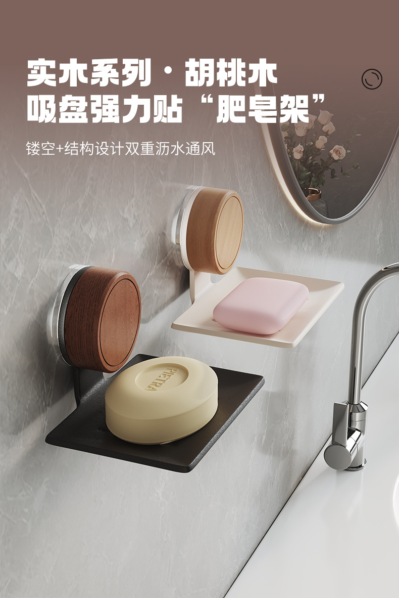 胡桃木吸盘肥皂置物架卫生间免打孔壁挂沥水洗漱台浴室墙面香皂盒