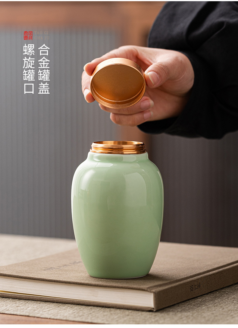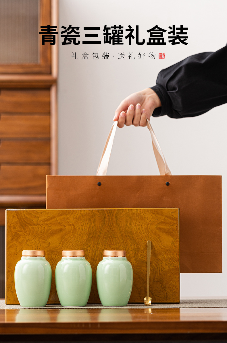 青瓷陶瓷茶叶罐子高档烤漆木盒陶瓷罐普洱金骏眉红绿茶叶礼盒包装