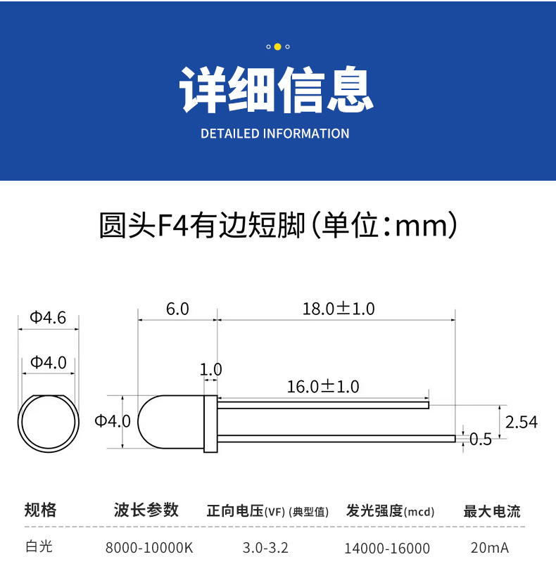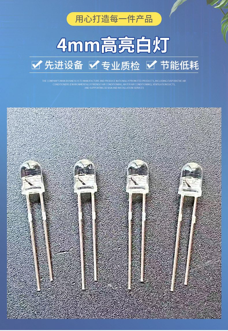 4mm超高亮白灯圆头透明环保指示灯led发光二极管
