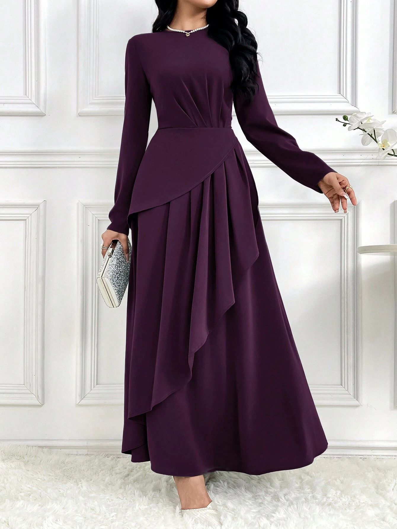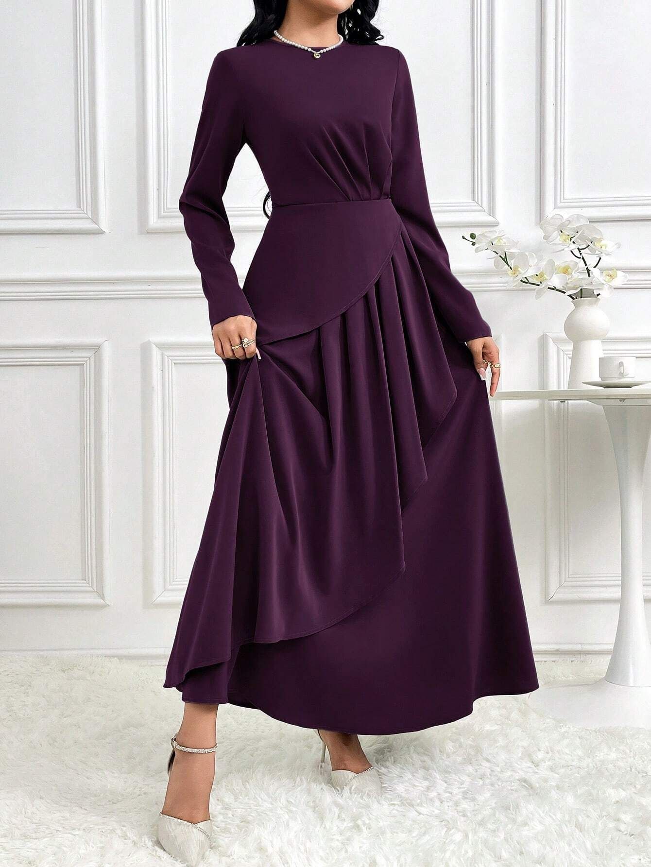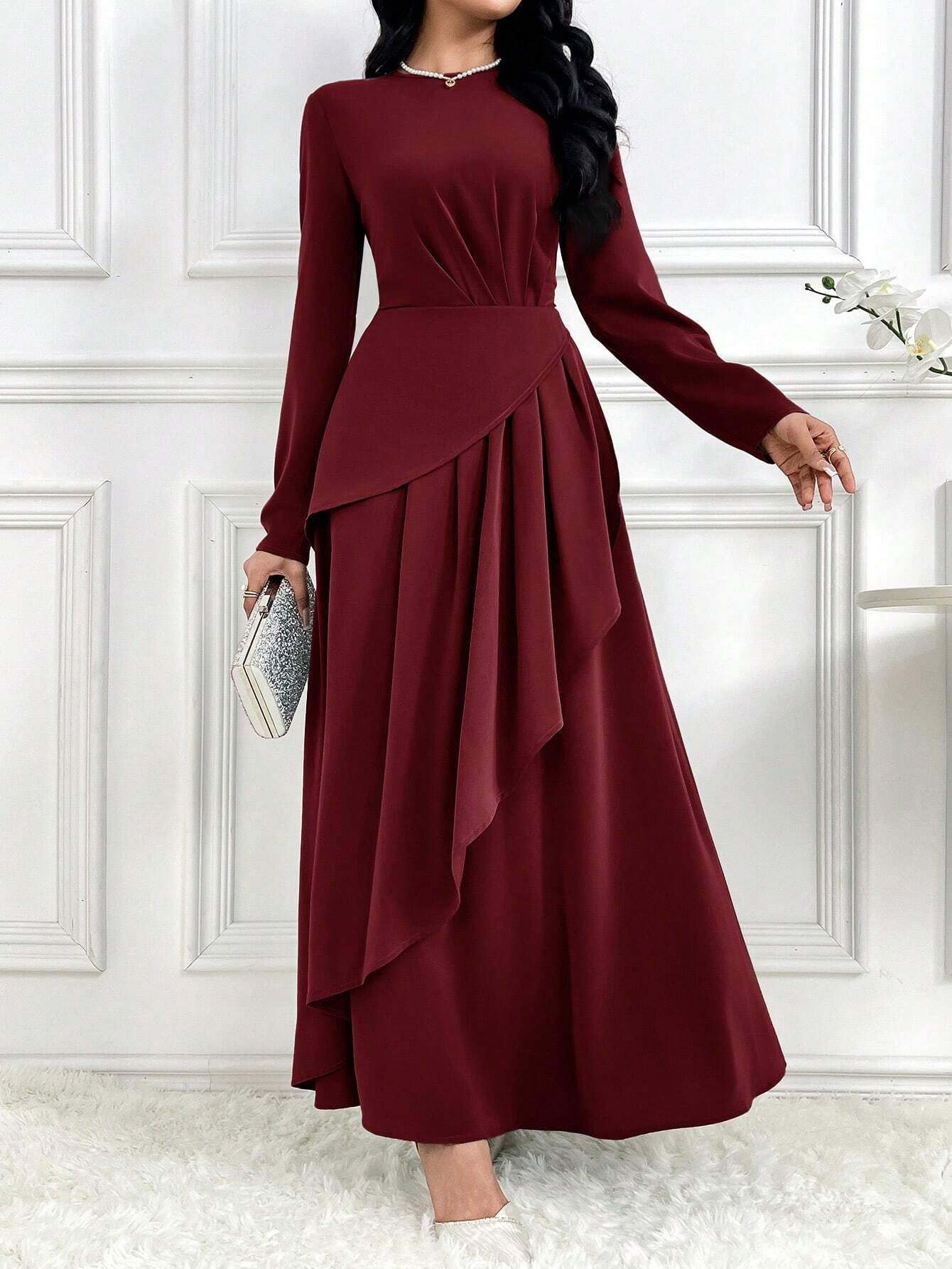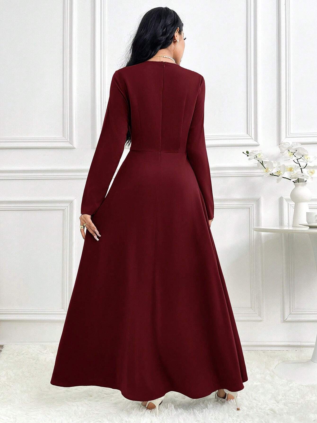 亚马逊欧美2025春季季新款设计感华贵时尚长袖长裙气质优雅连衣裙