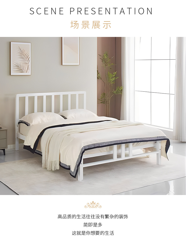铁艺床架双人排骨金属架加固出租房民宿金属床简易现代简约铁架床