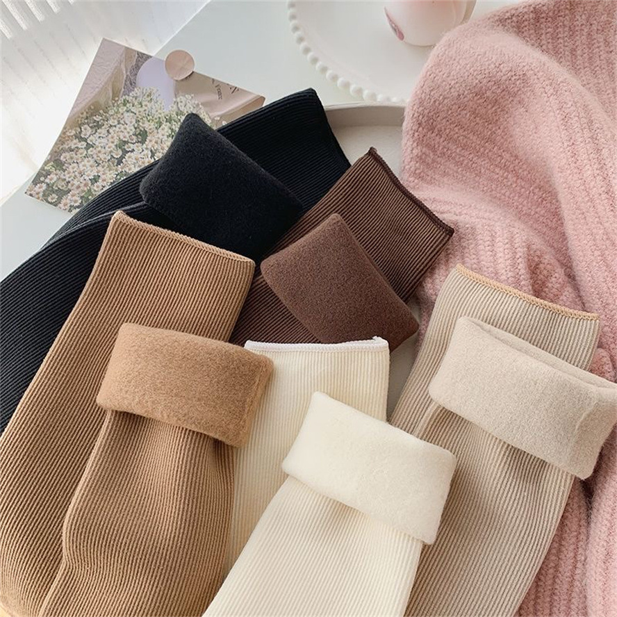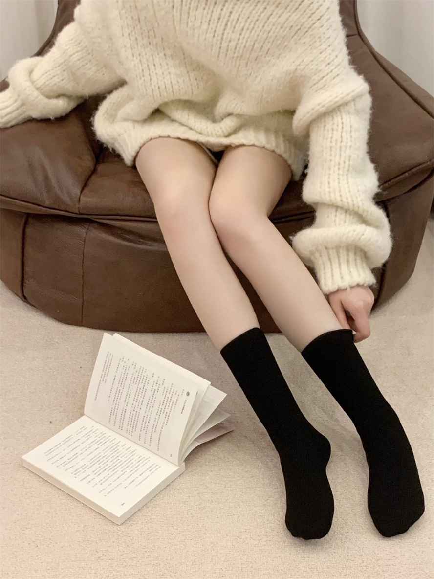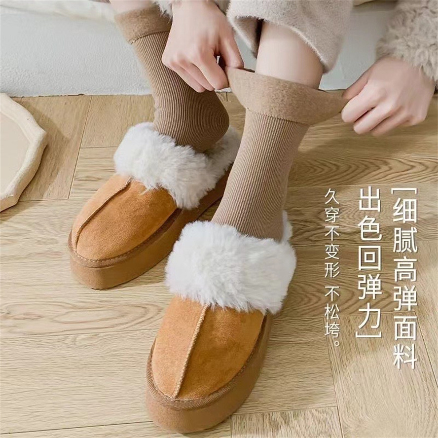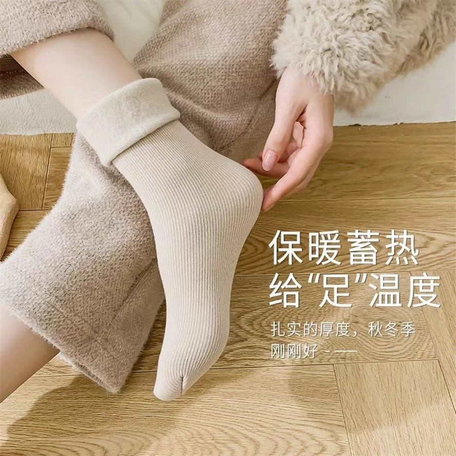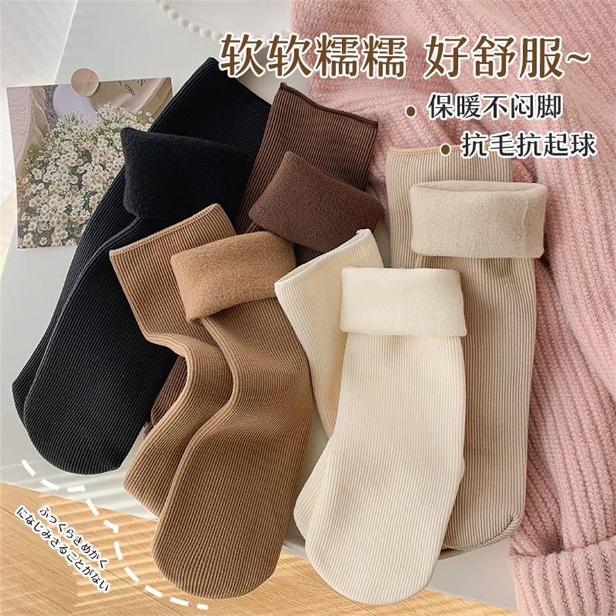 女秋冬袜子大地色雪地袜中筒加绒加厚保暖睡眠地板长袜女士冬季袜