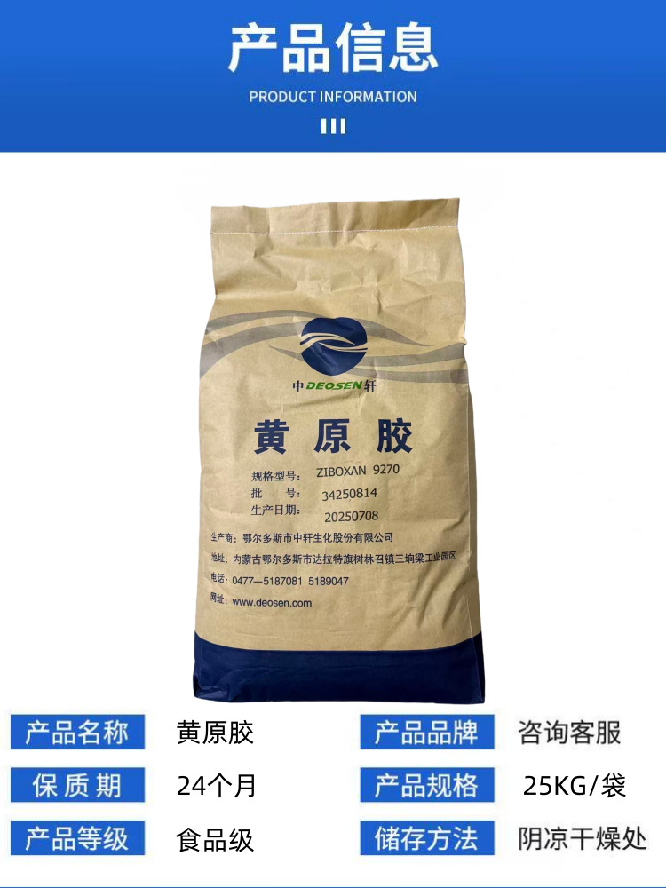 中轩黄原胶食品级汉生胶增稠乳化剂汉生胶固体饮料糕点黄原胶现货