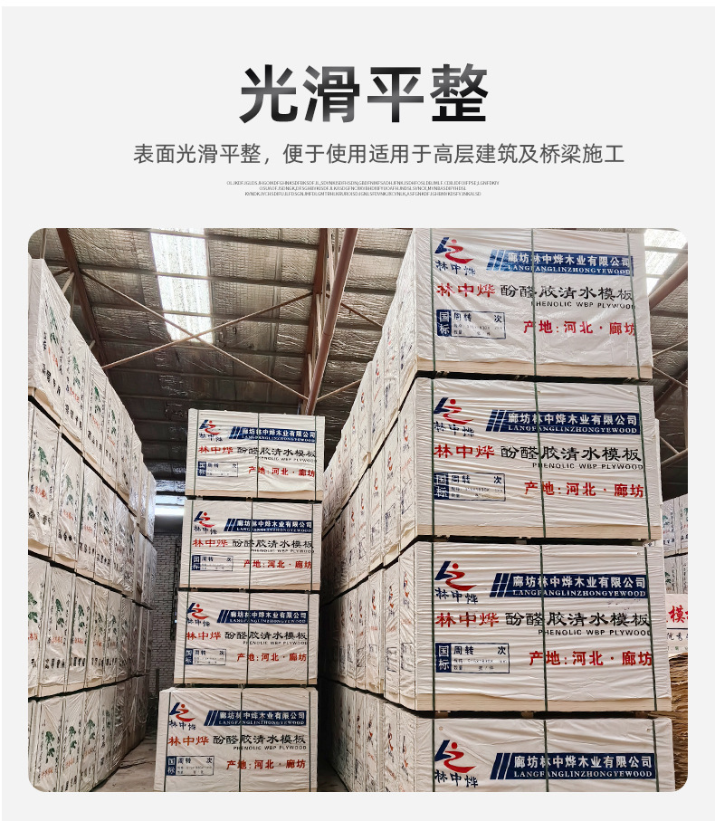 批发模板清水覆膜板工地支撑模板木板河北厂家直供杨木黑板