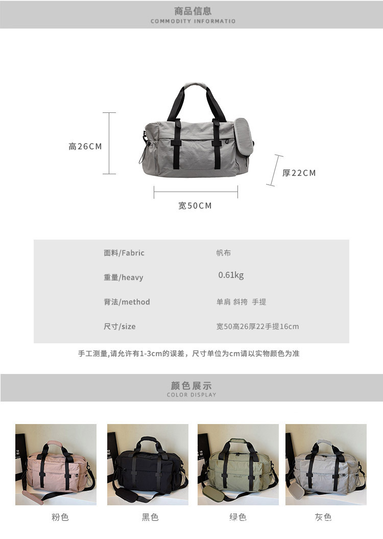 旅游健身包男款大容量短途旅行包轻便简约手提包男士斜挎行李背包