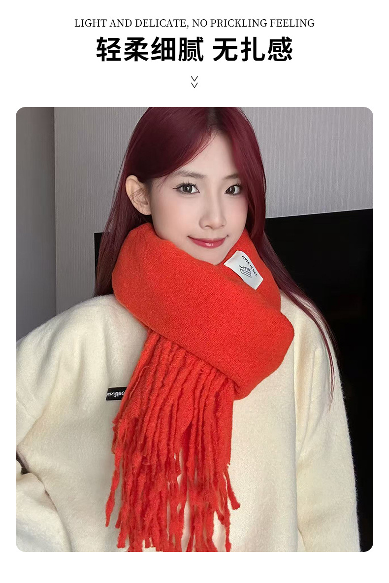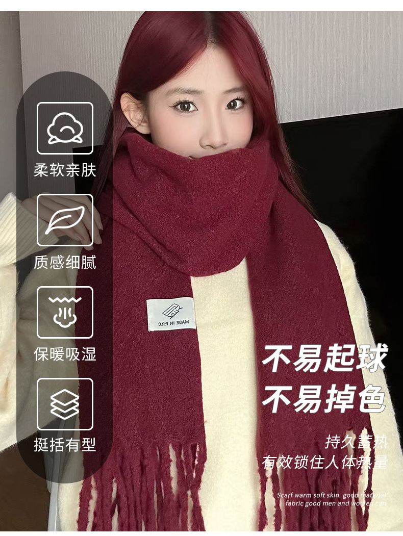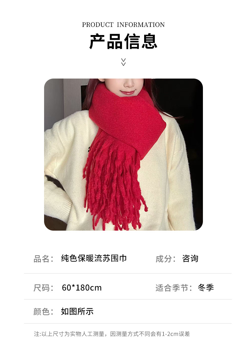 韩系氛围感软糯长款流苏围巾女冬天保暖外搭圣诞新年红色围巾现货,批发价,价格:15,厂家直销,韩系氛围感软糯长款流苏围巾女冬天保暖外搭圣诞新年红色围巾现货,免费拿样。