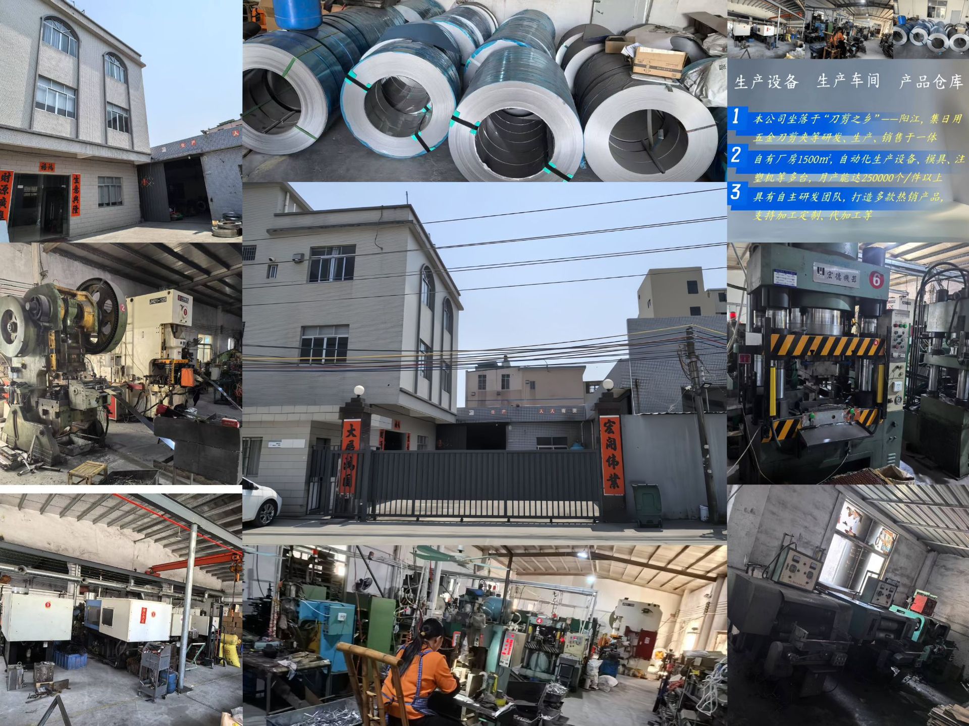 阳江市阳东区金朋五金厂,坐落于刀剪之乡---阳江,是一家专业集研发,生产,包装,销售,售后为一体的五金厂,只要产品有,美容工具、修甲工具等。生产模式让我们在众多优秀竞争者中崭露头角,获得许多顾客一致好评,欢迎国内外客户来样洽谈。我们是私人厂房,拥有完善的设备,液压机、冲床、线切割等机械。我们本着:质量为本,顾客至上,诚实守信“的服务宗旨,您的支持是我们莫大的动力,我们期待与您携手共赢。
