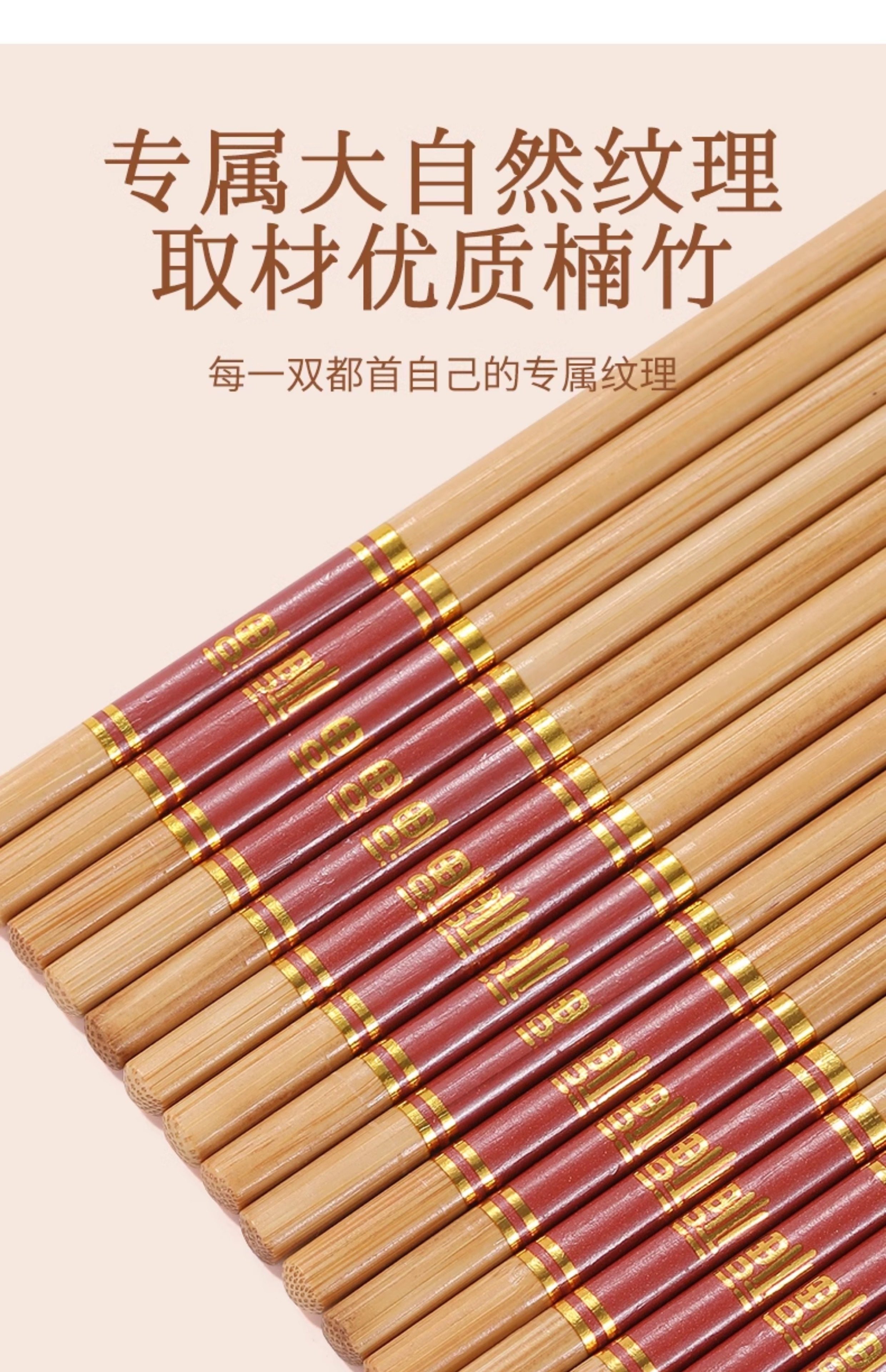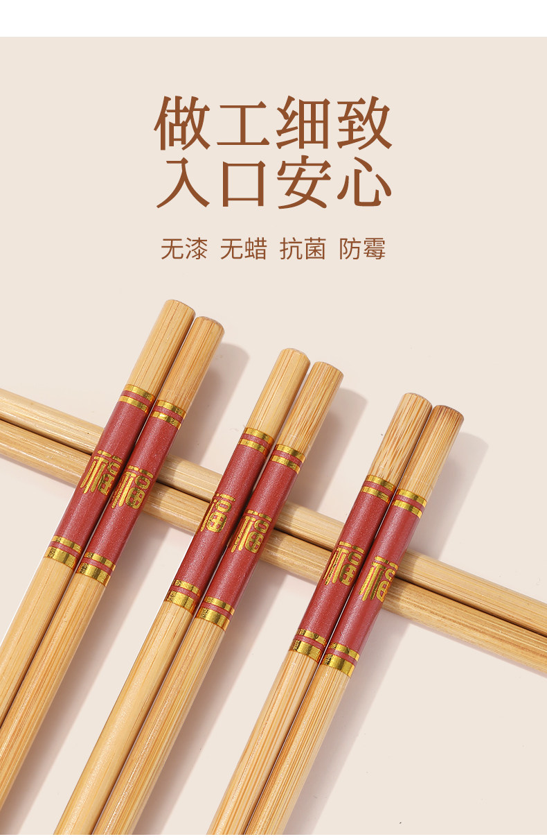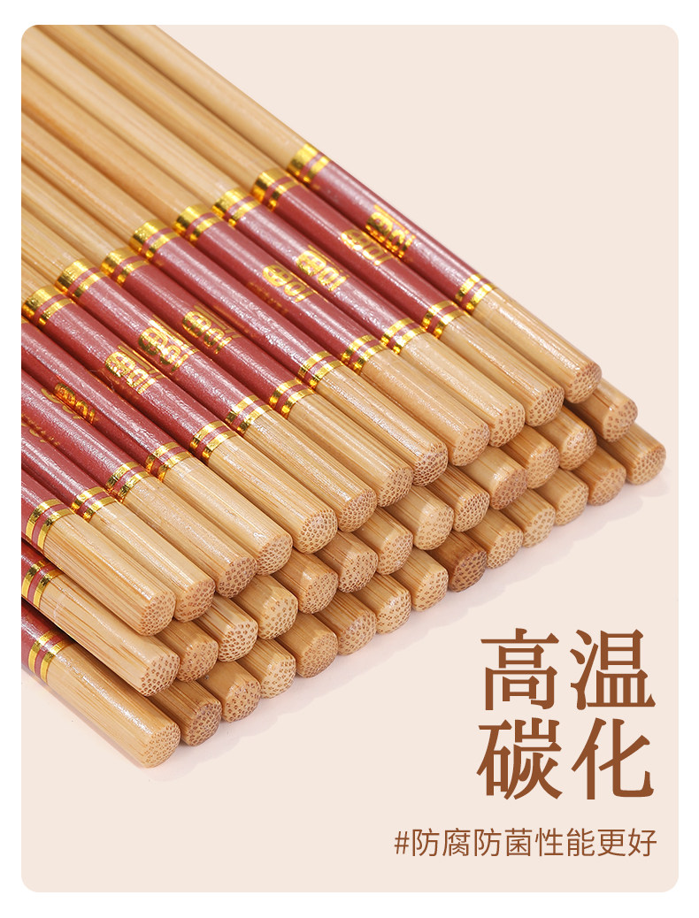 家用分餐竹筷子五色筷防霉天然楠竹筷子印花筷耐高温碳化高档餐具