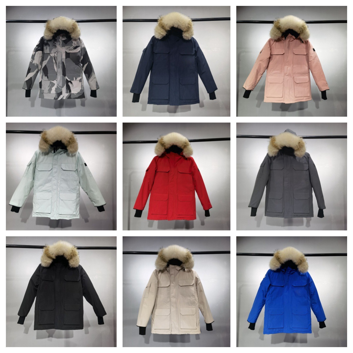 莆田大鹅08款 带LOGO 石墨灰经典派克中长款连帽狼毛09男女羽绒服