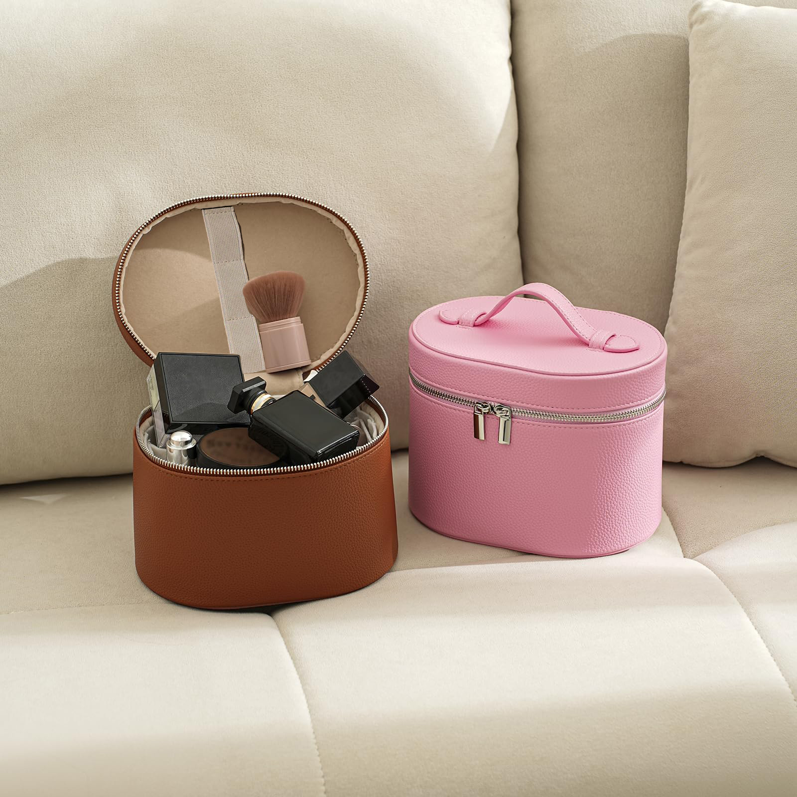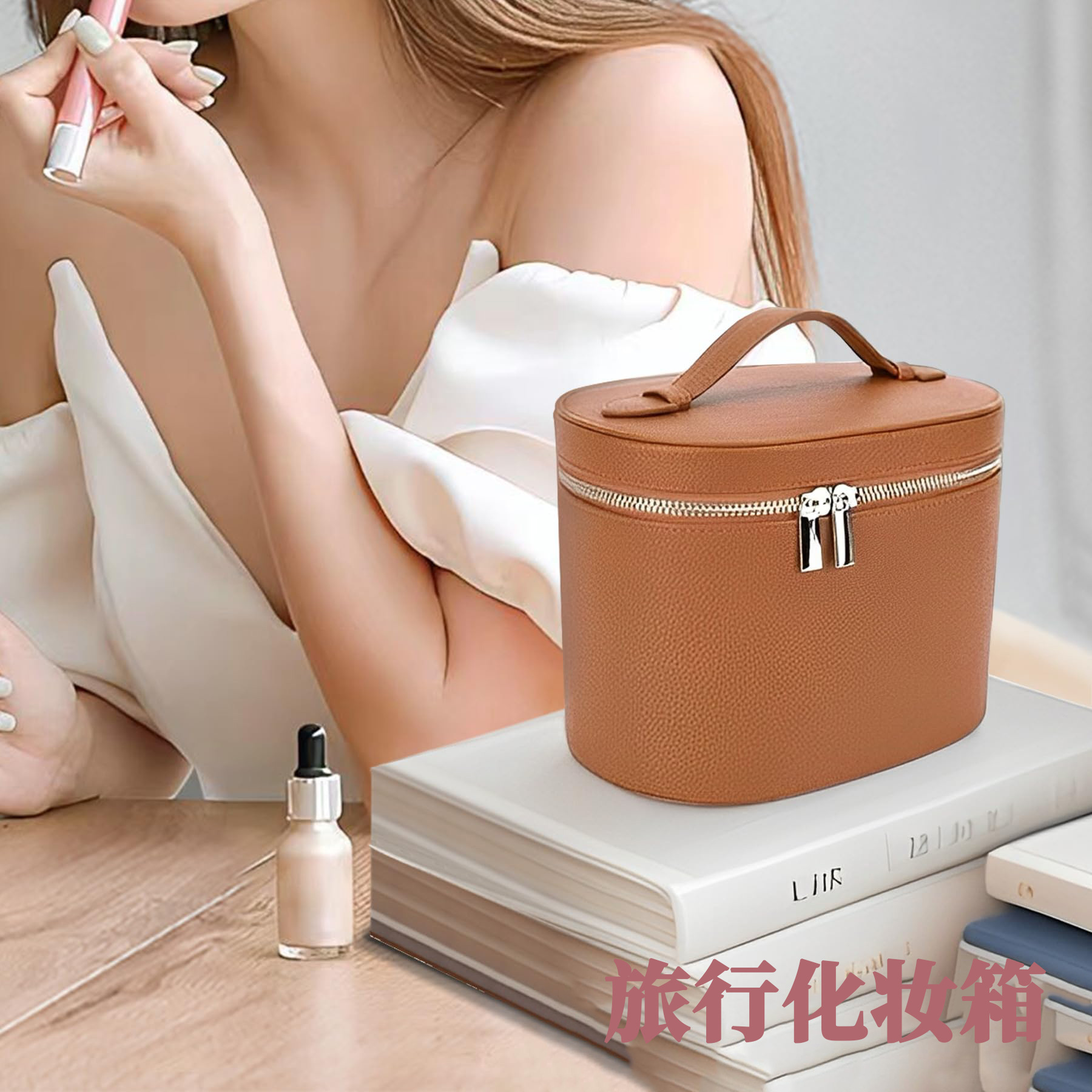 跨境荔枝纹新款带绑带大容量旅行时尚潮流便携整理收纳分格化妆包