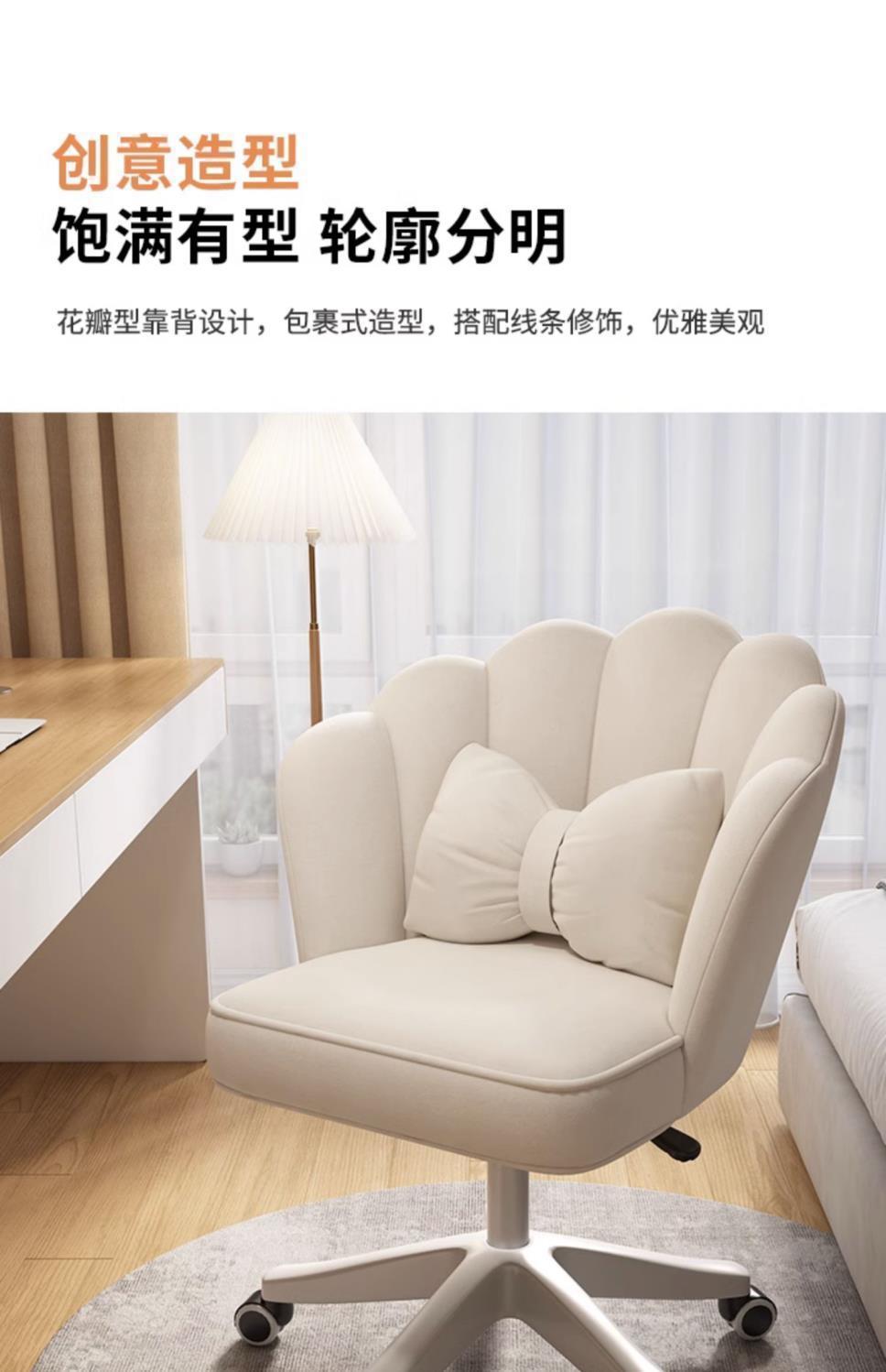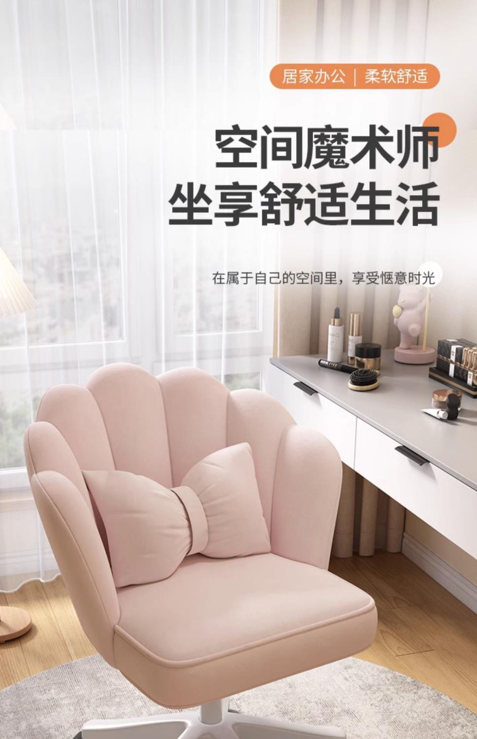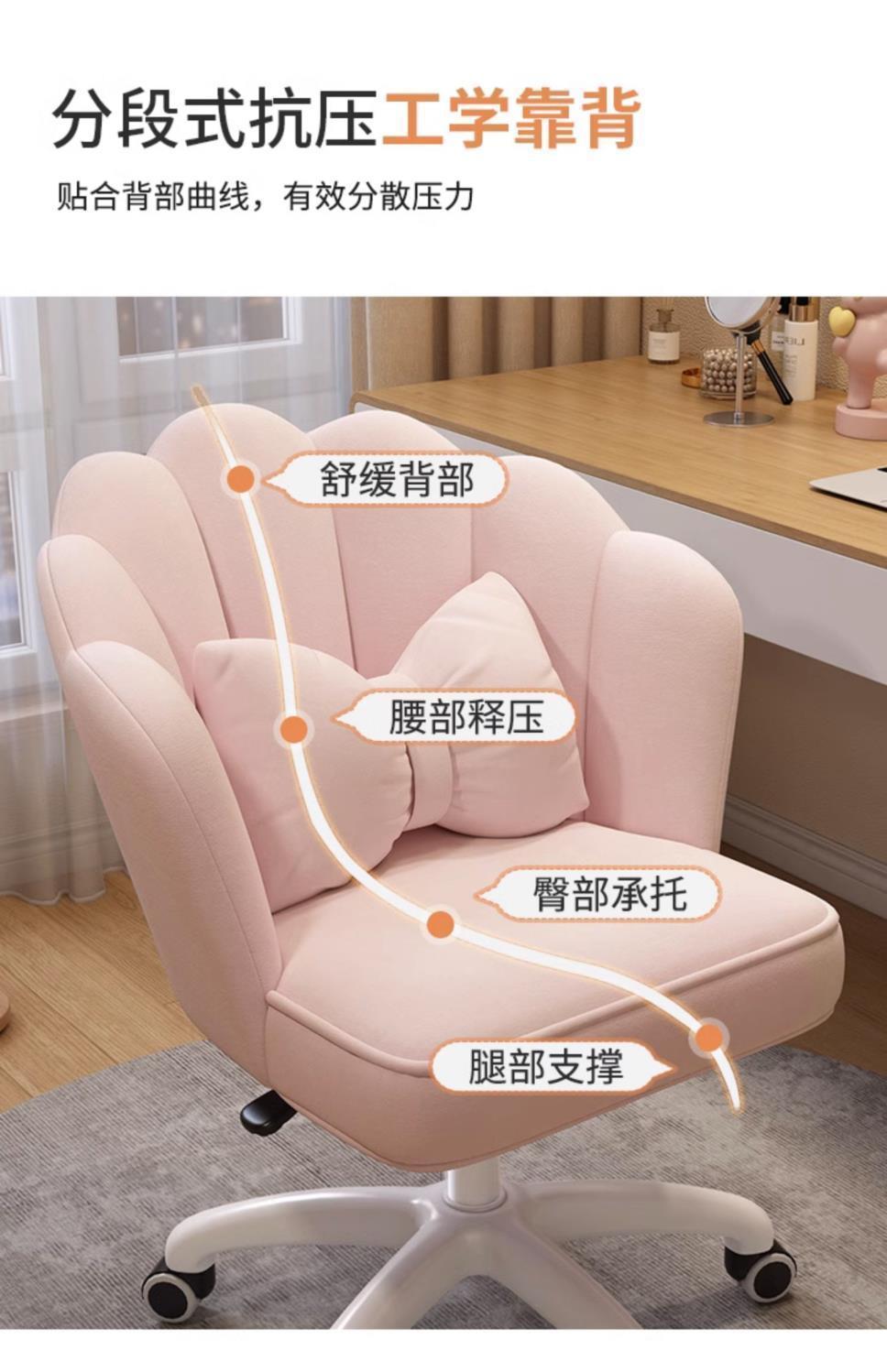 电脑椅家用女生卧室直播花瓣化妆椅舒服久坐书桌办公旋转椅子靠垫