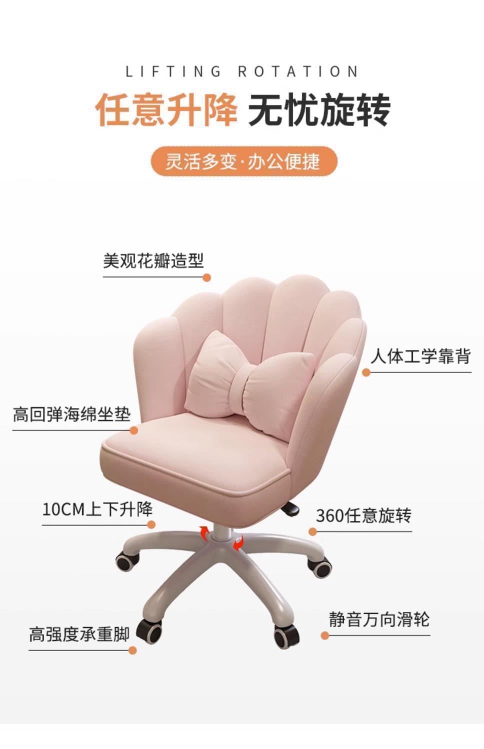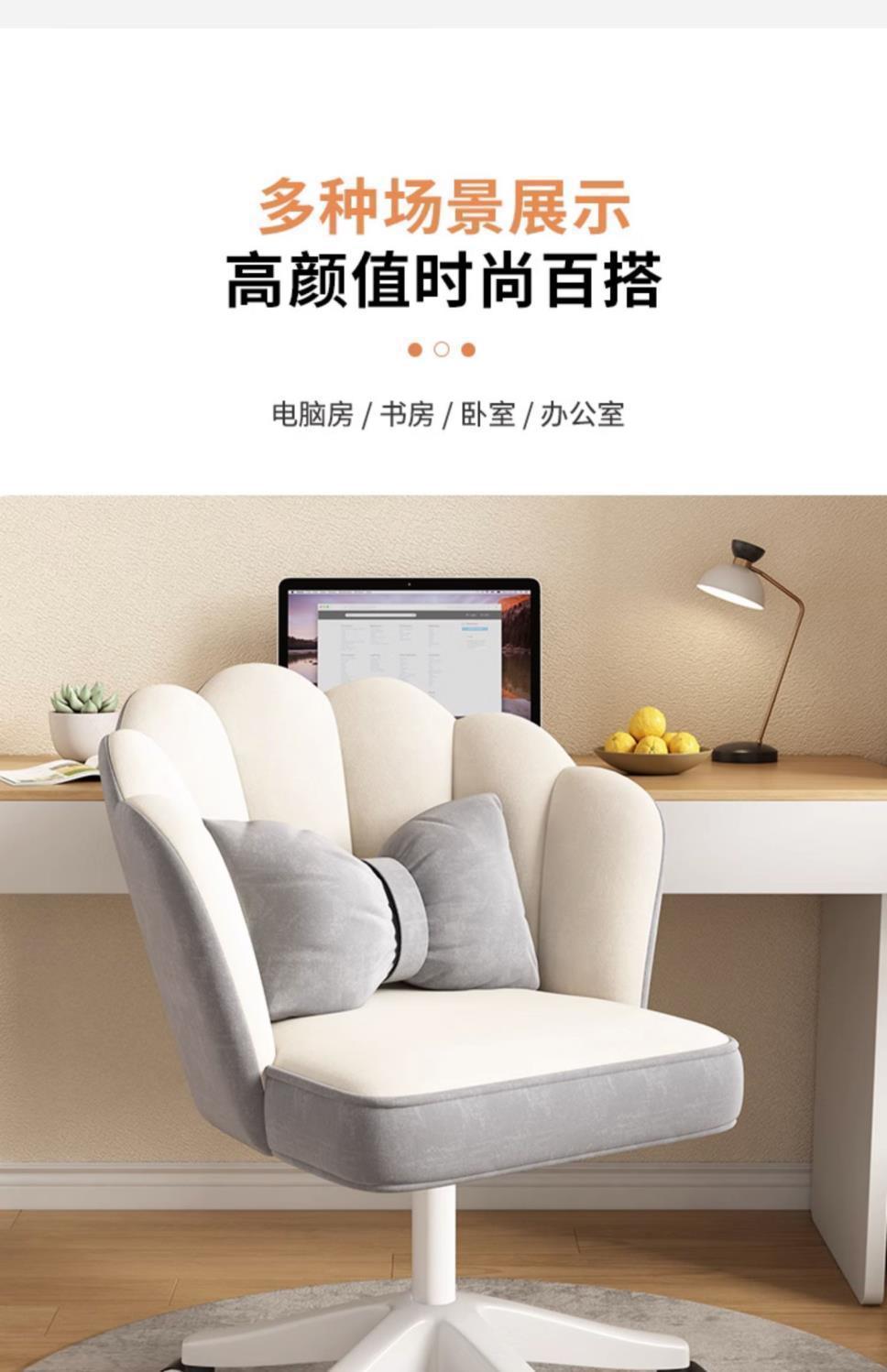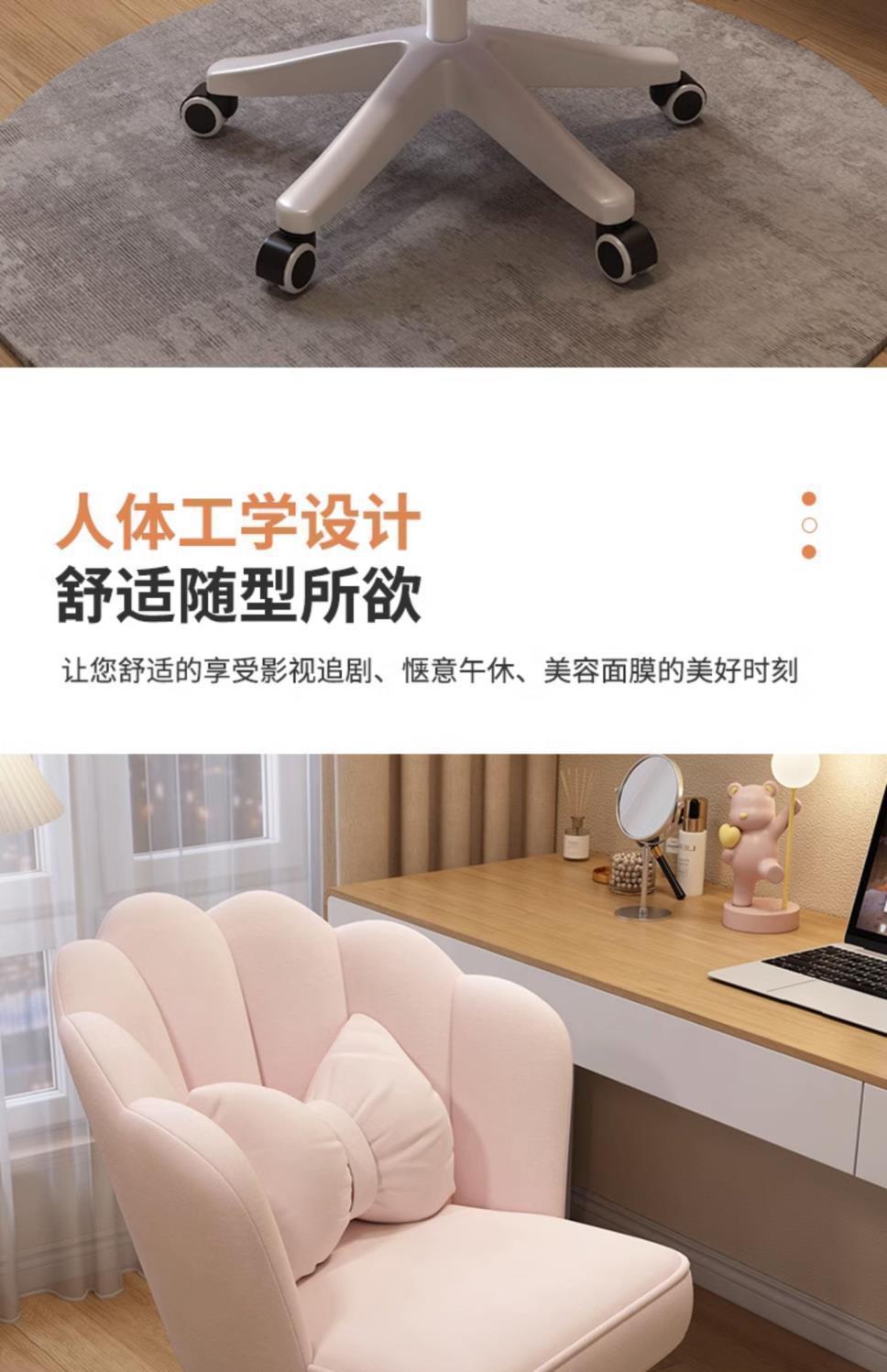 电脑椅家用女生卧室直播花瓣化妆椅舒服久坐书桌办公旋转椅子靠垫