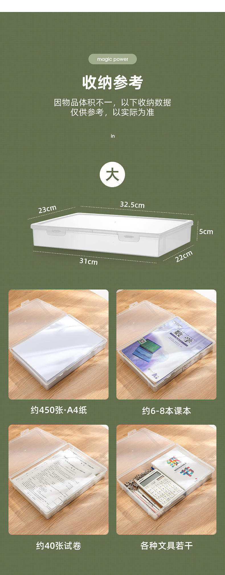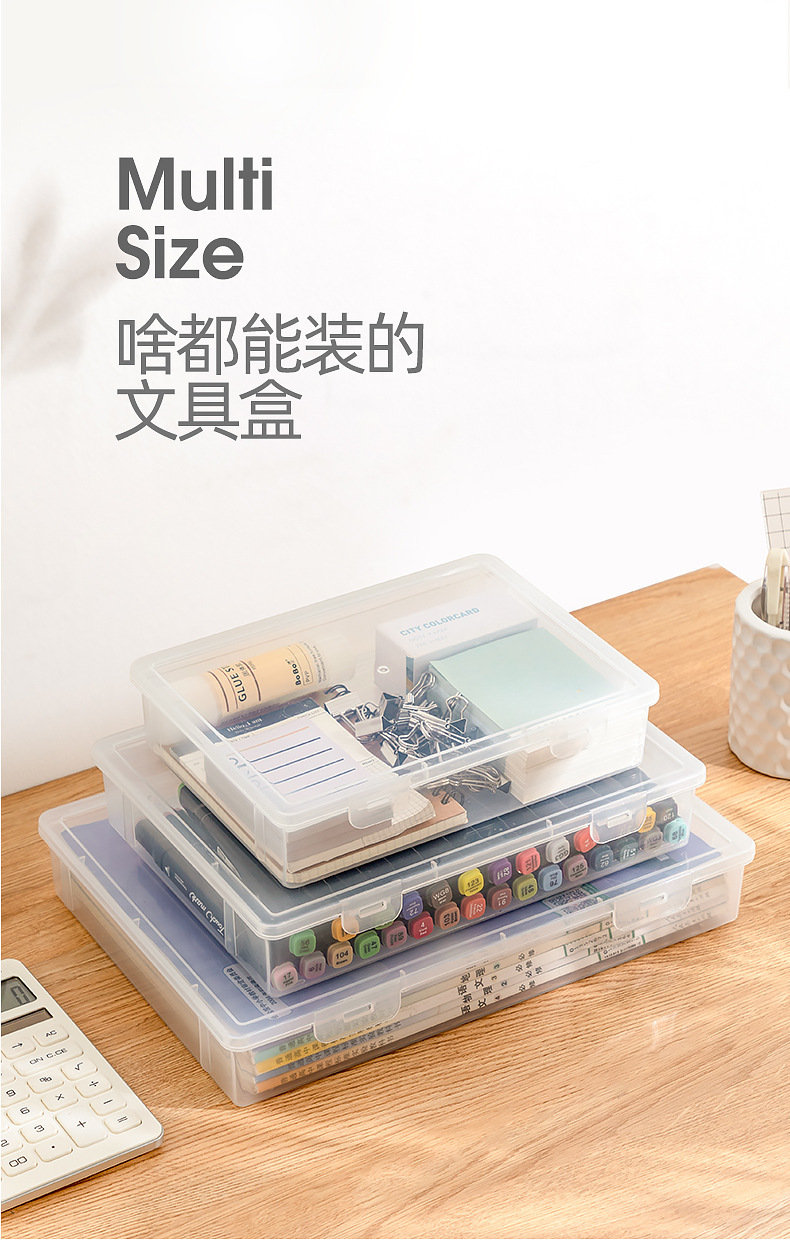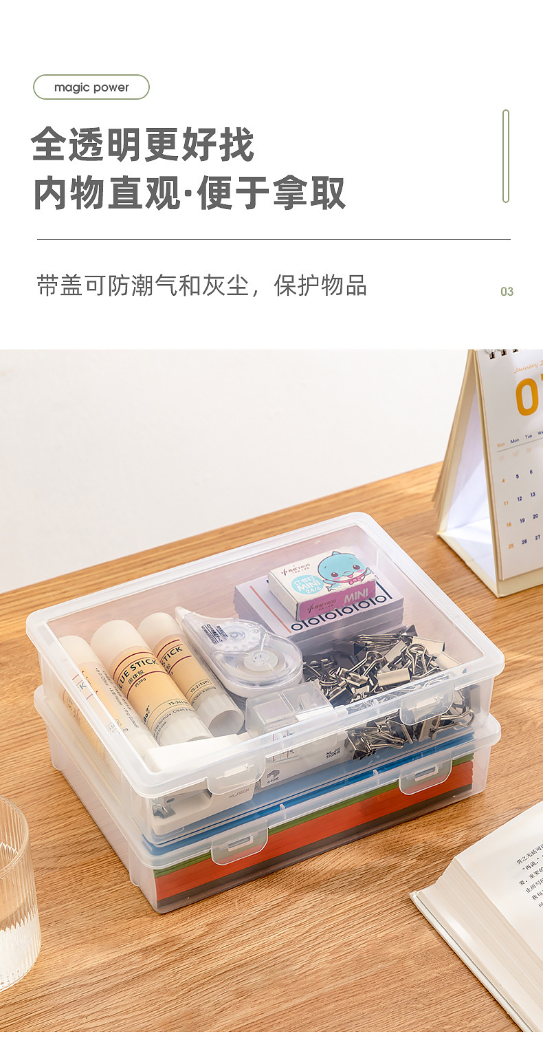 4. 大容量A4纸收纳盒 桌面文件盒 办公资料整理箱 透明可视带盖储物盒