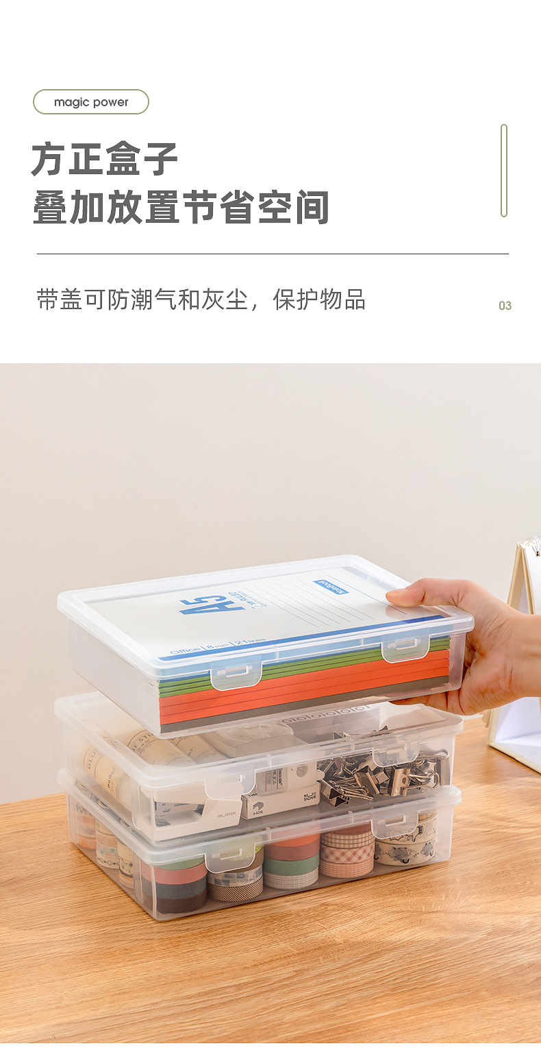 8. A4资料收纳盒 办公桌面文件盒 加厚档案盒 可叠加带盖透明整理盒厂家