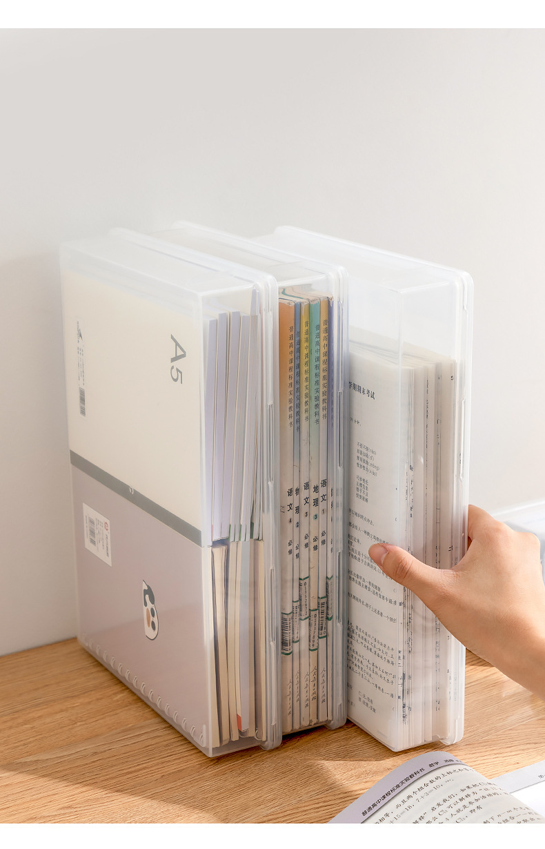 2. 透明立式A4文件收纳盒 学生书本资料盒 办公桌面防尘整理盒厂家直销