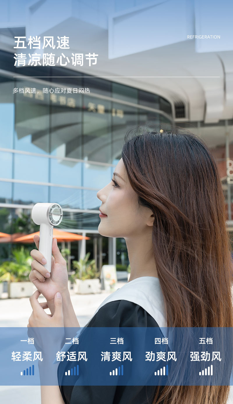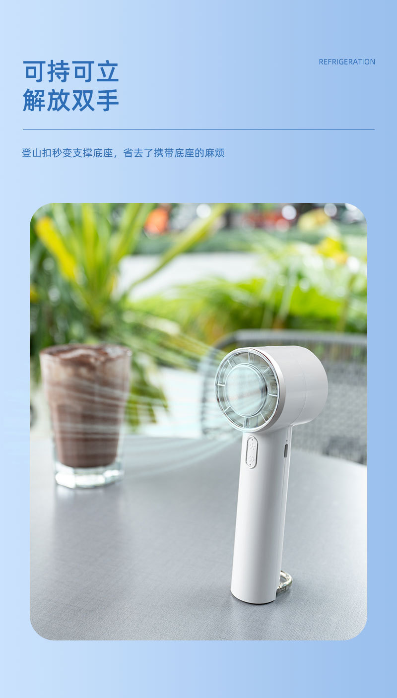 25年新款手持冰敷风扇半导体制冷小风扇登山扣USB5档大风力风扇