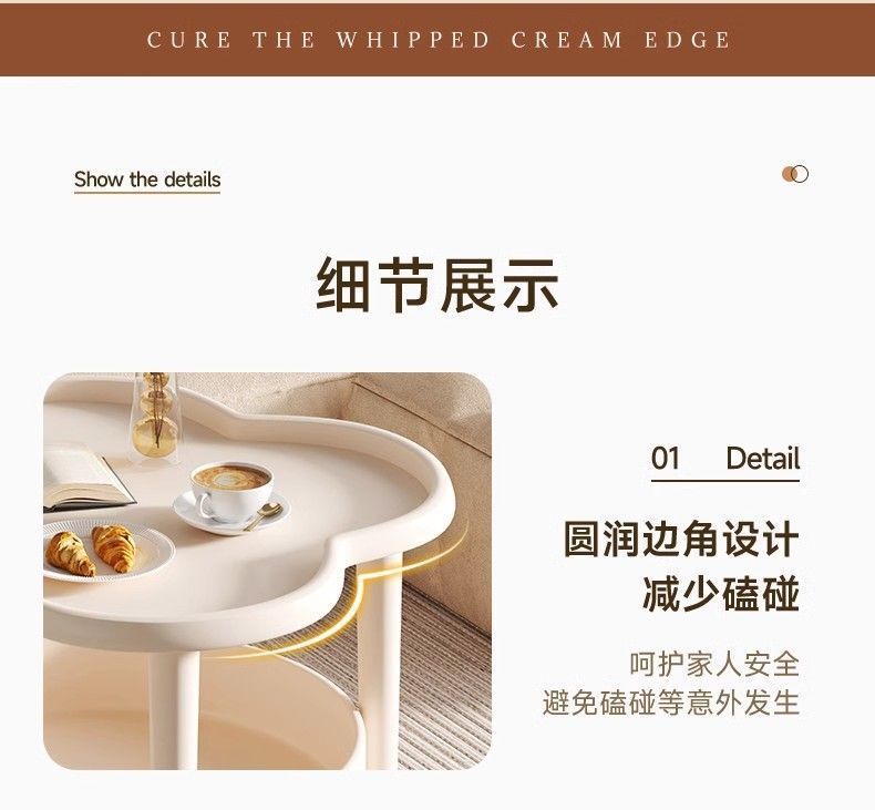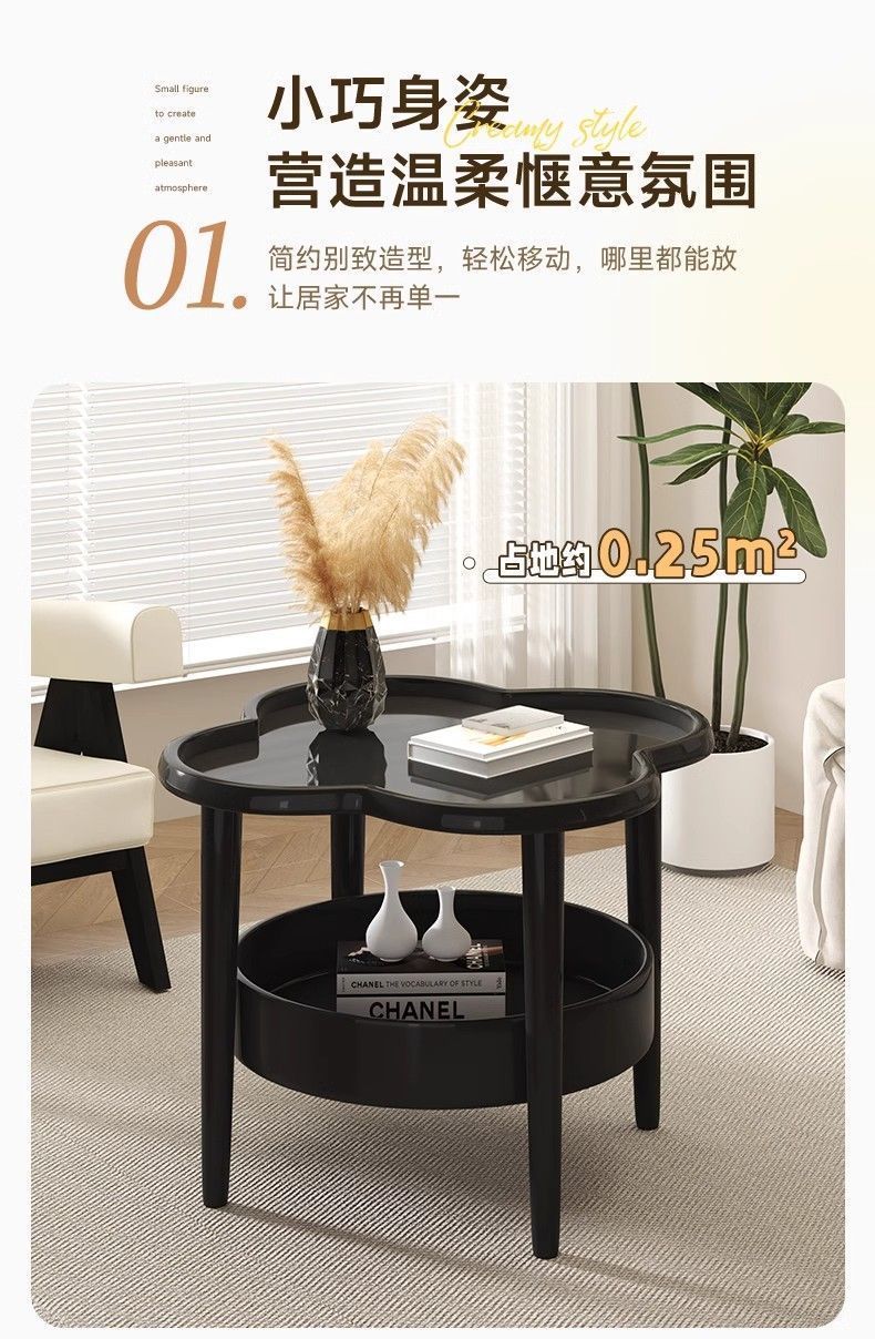 简约双层四叶草角几卧室床头柜轻奢家用客厅收纳置物桌沙发小茶几