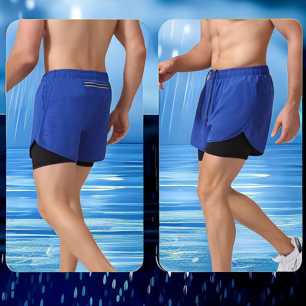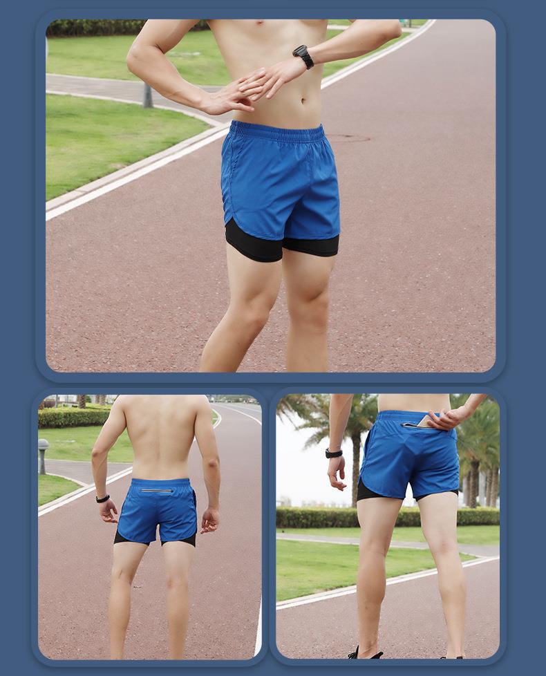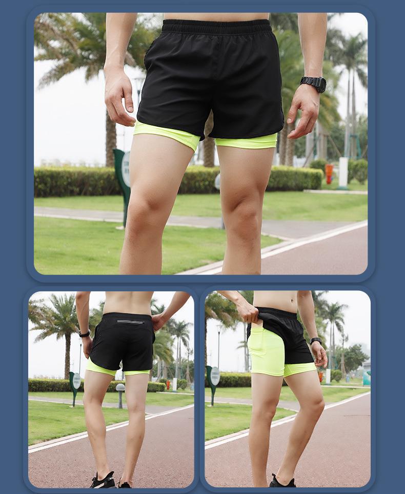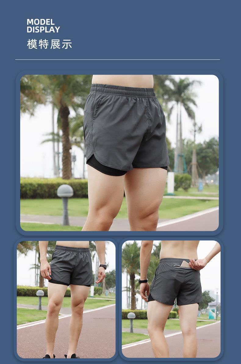 2023爆款男士双层运动短裤速干透气防走光跑步训练三分健身假两件