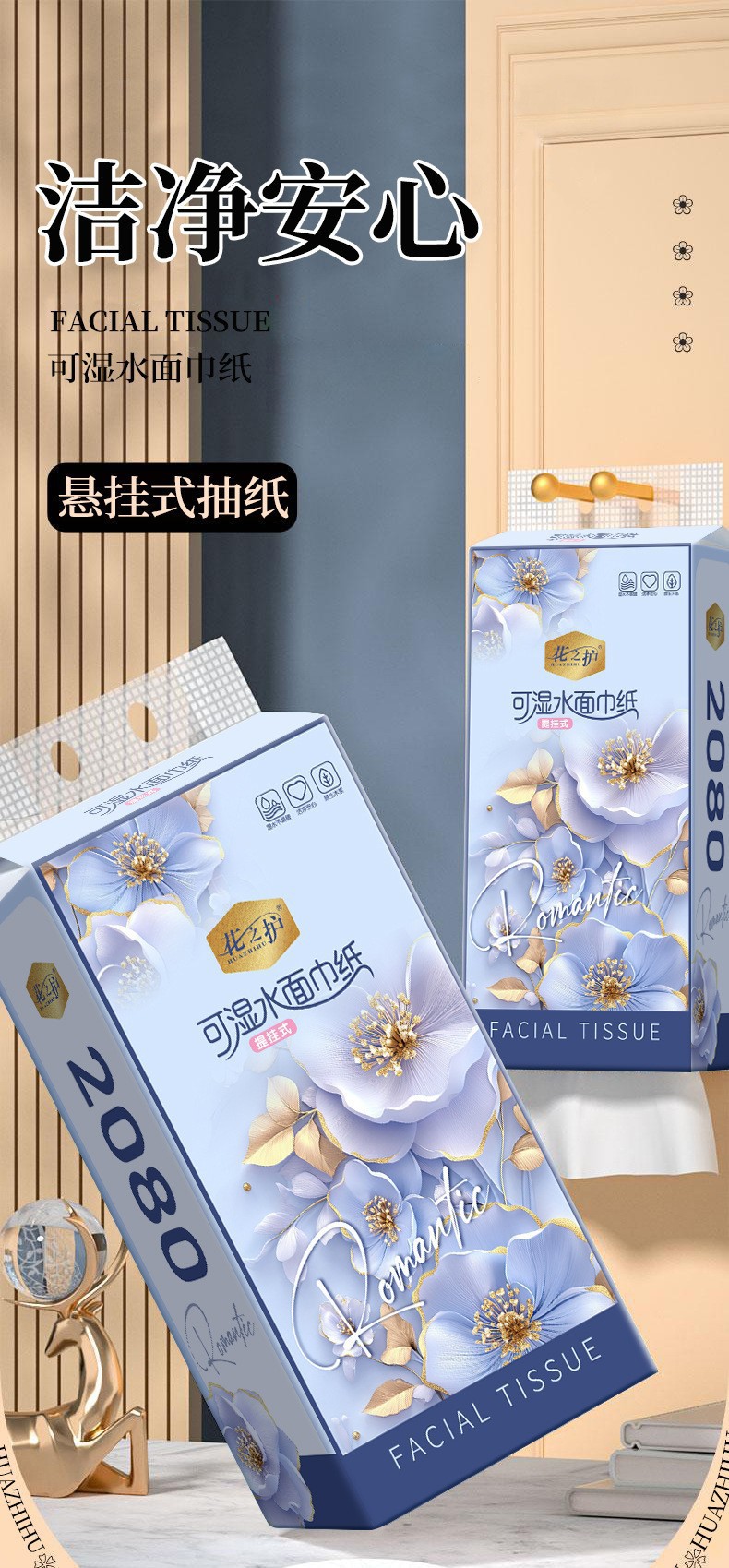 厂家直发花之护悬挂式抽纸可湿水面巾纸擦手纸底部抽取式纸巾