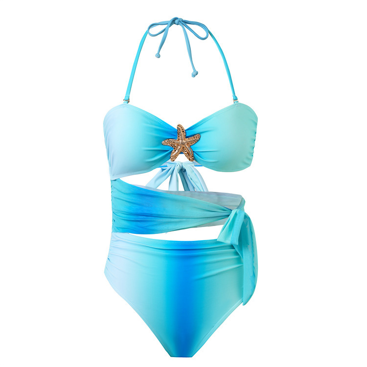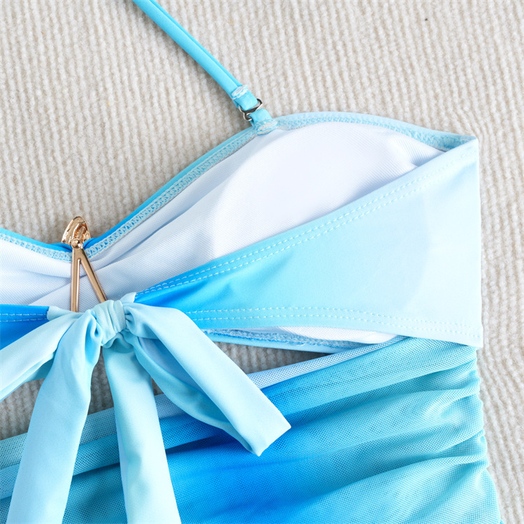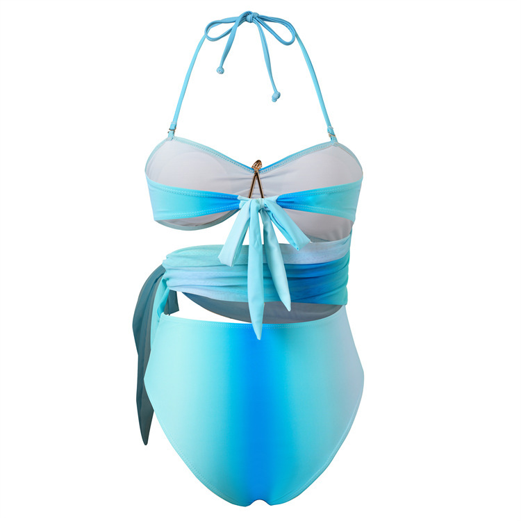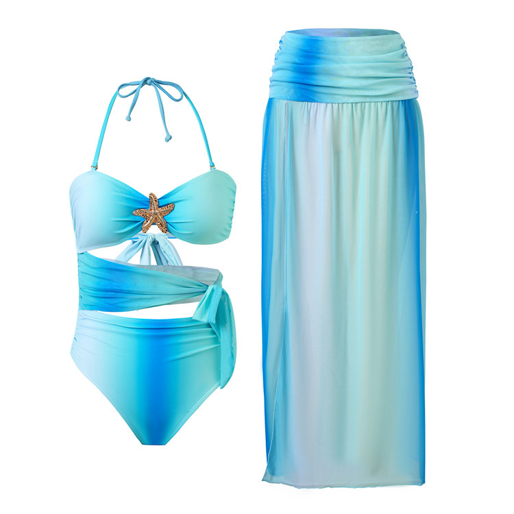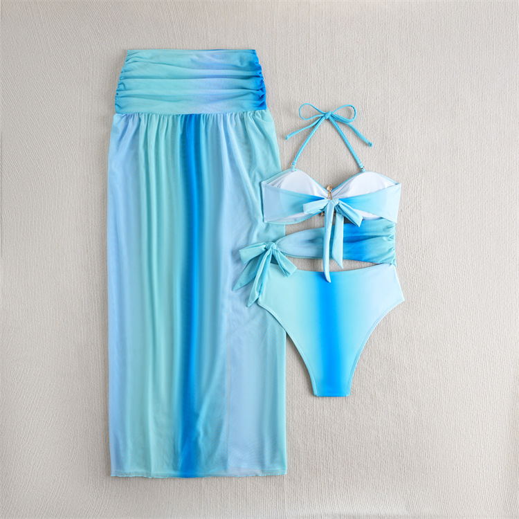 2026新款网纱长裙比基尼三件套渐变晕染泳装性感欧美外贸分体泳衣