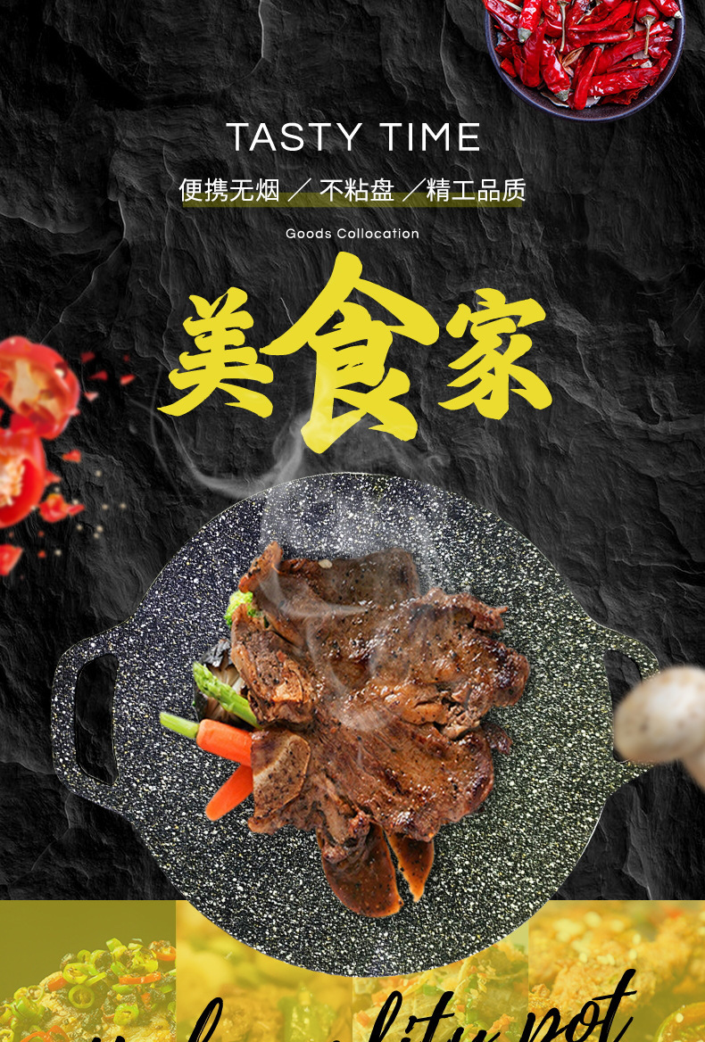 烧烤盘户外麦饭石式炉电磁炉粘韩式烤肉锅煎牛排铁板家用烤串烤盘