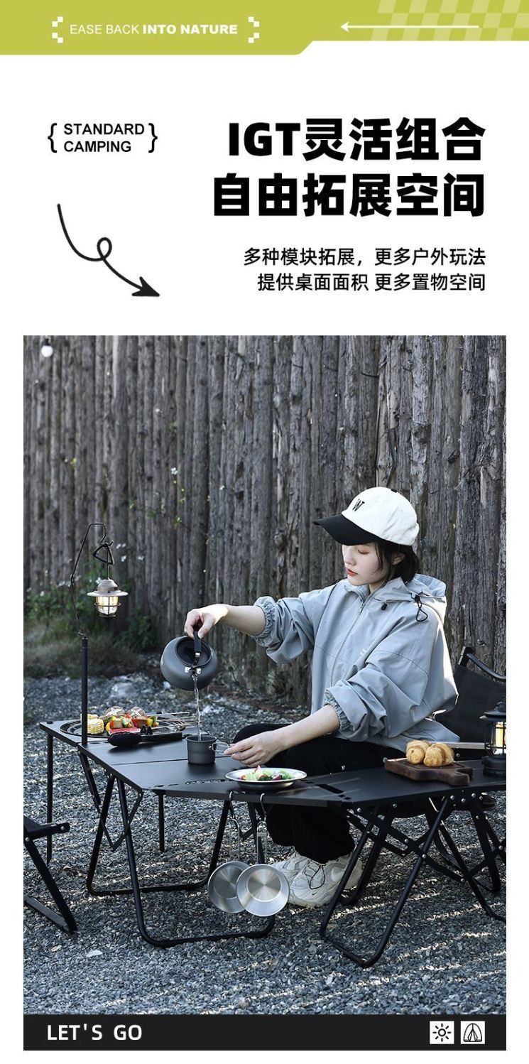 户外露营战术桌IGT碳钢轻量化露营便携野餐一秒折叠多功能旅行桌