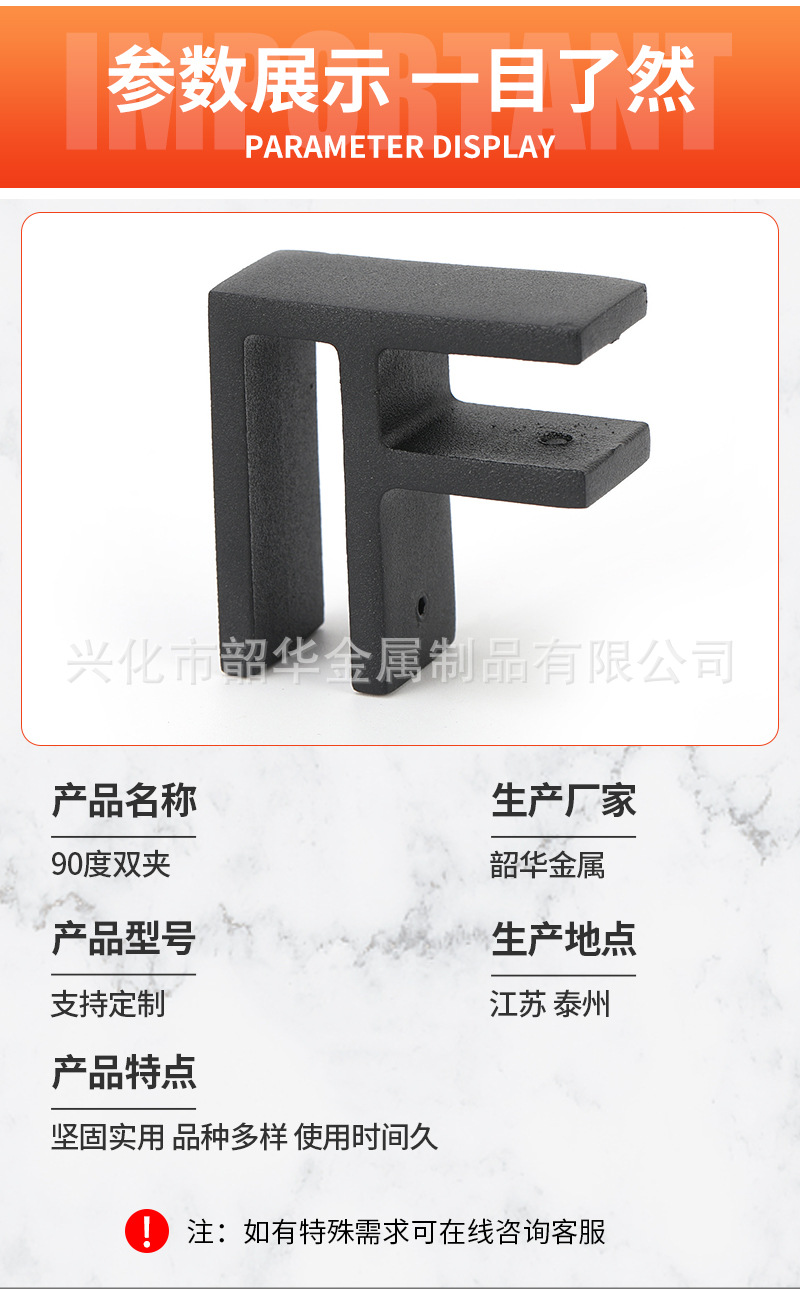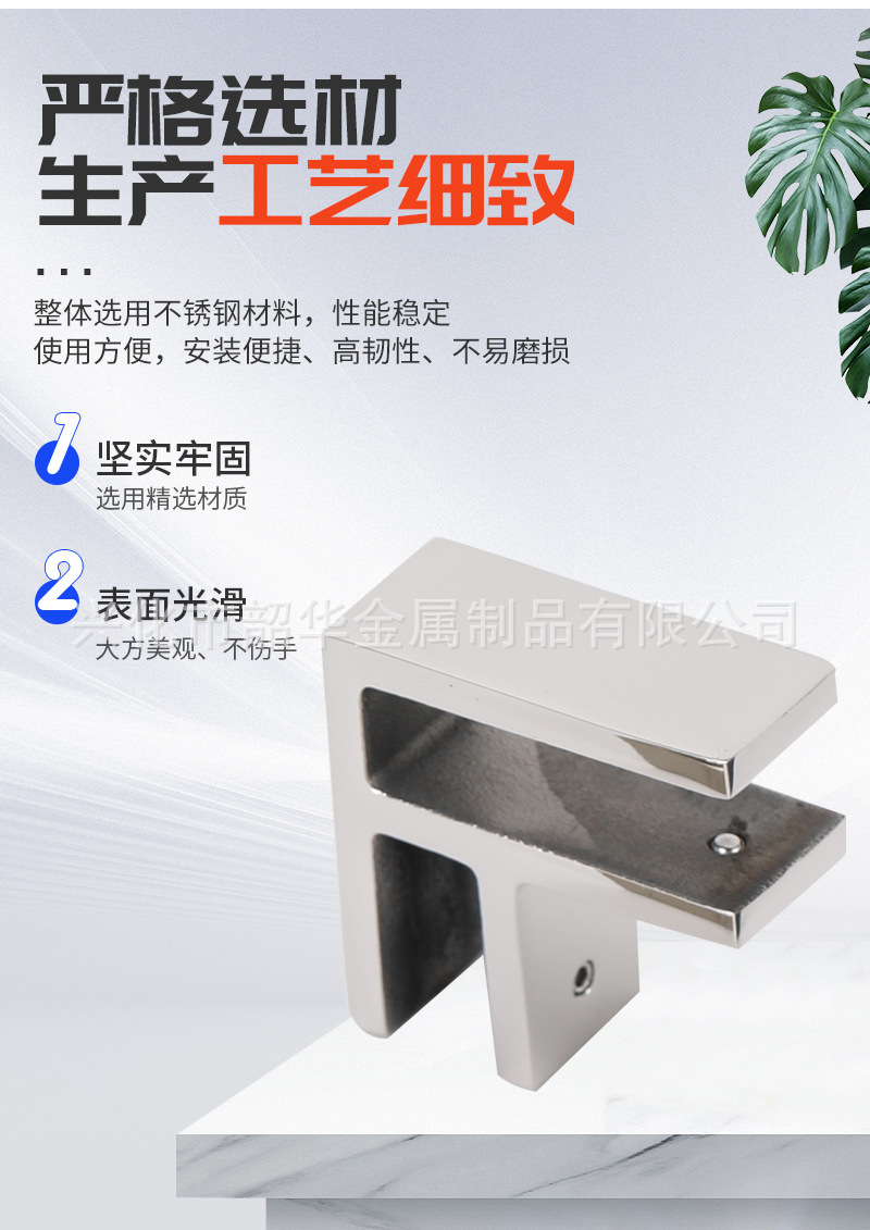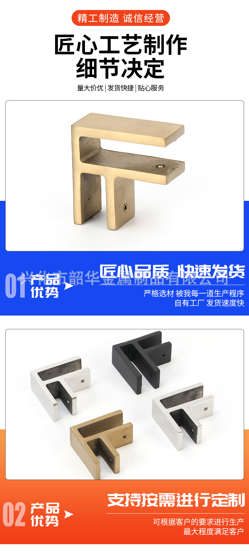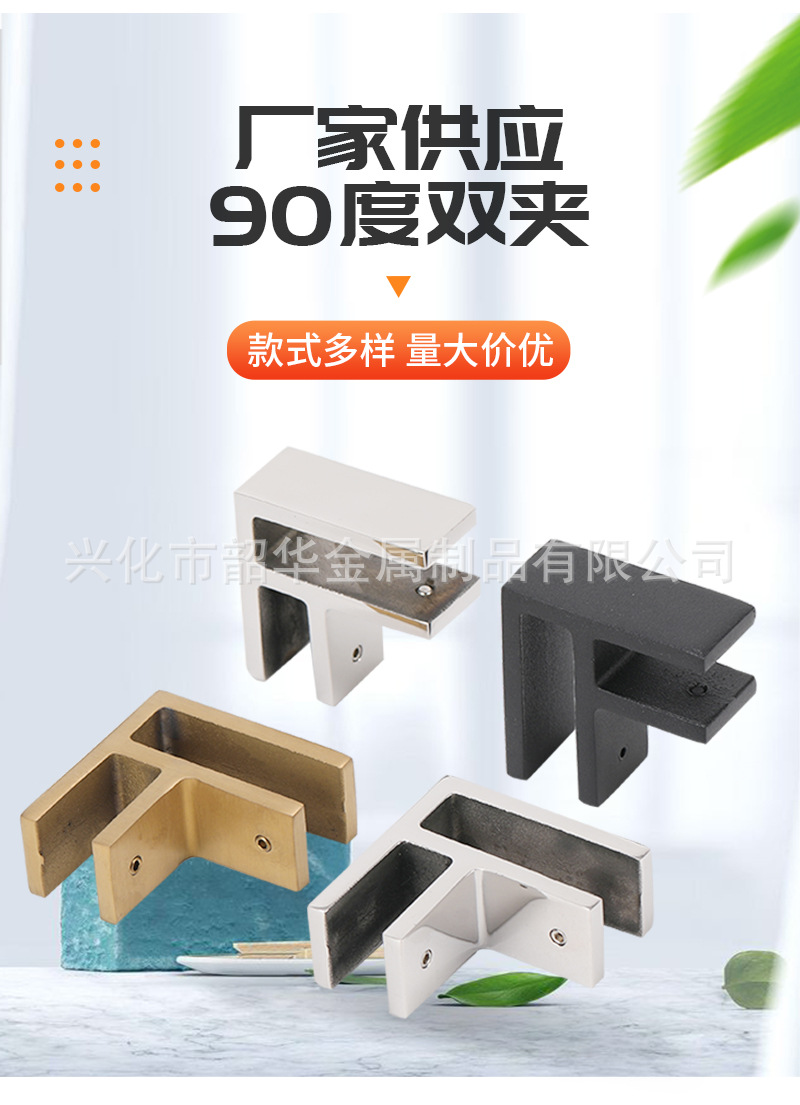 推荐理由:不锈钢墙角90度双夹 多色五金配件304不锈钢长方形直角玻璃双夹
