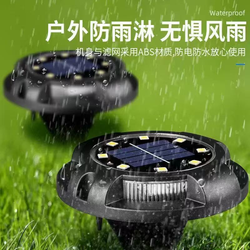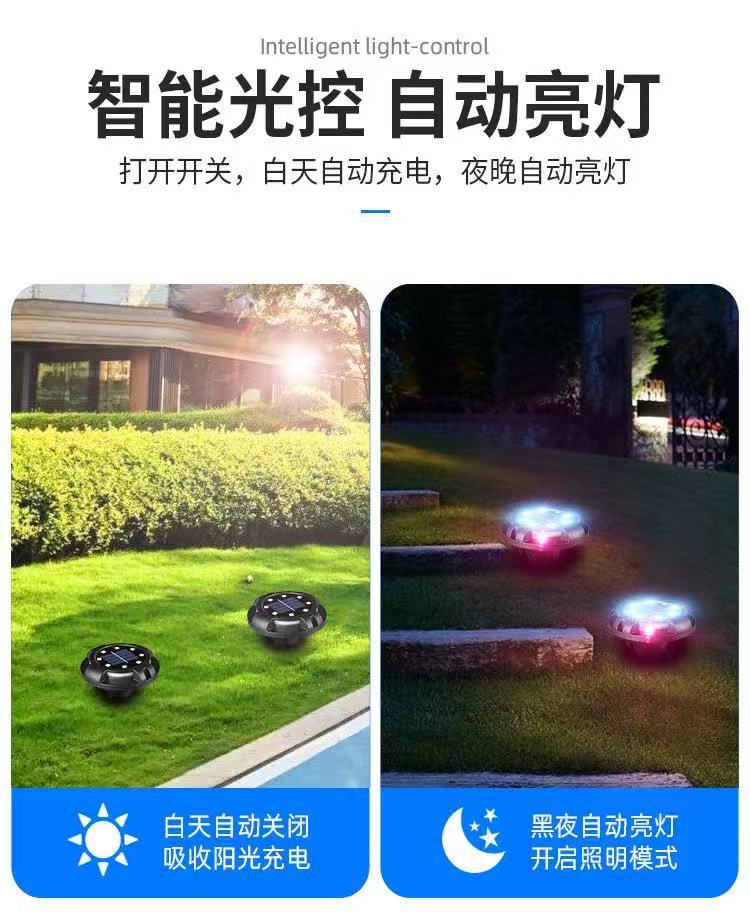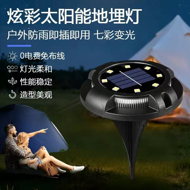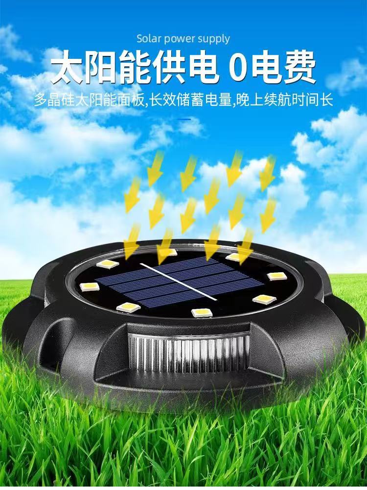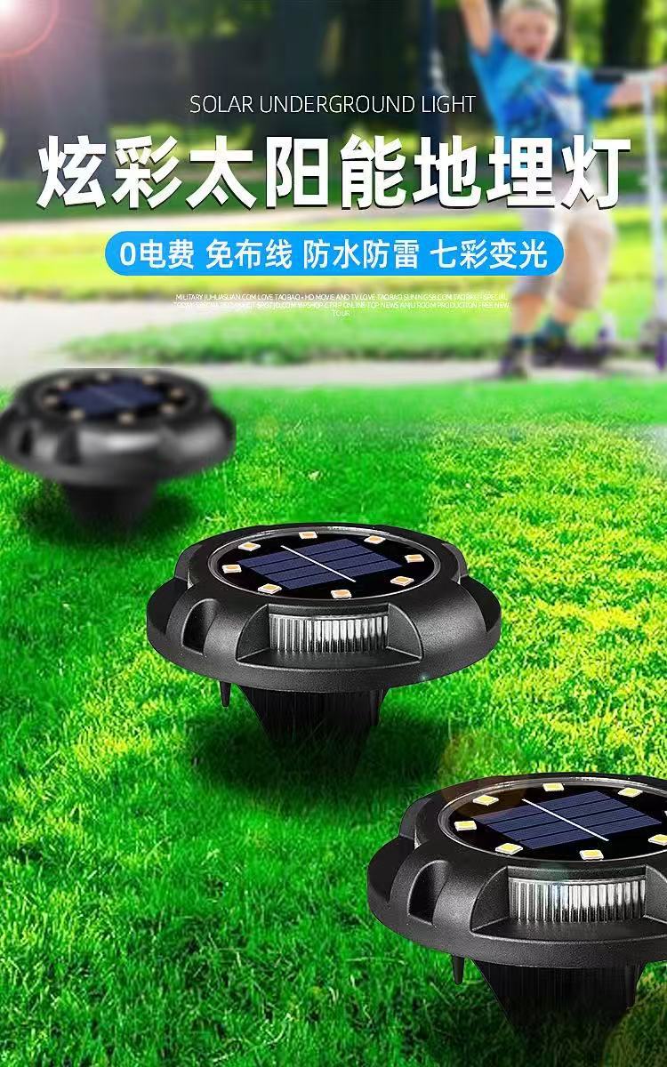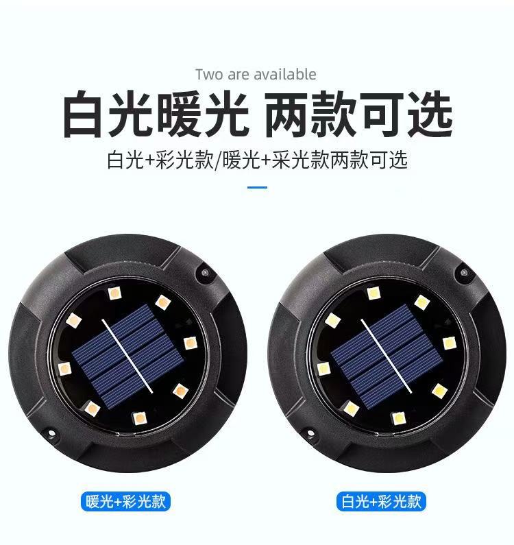新款户外太阳能8LED不锈钢地埋灯庭院坪灯道路花园防水地插灯暖光