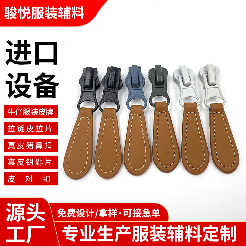 广东皮拉片拉链头皮革拉片古铜皮拉牌皮革服装箱包拉尾钥匙片拉片