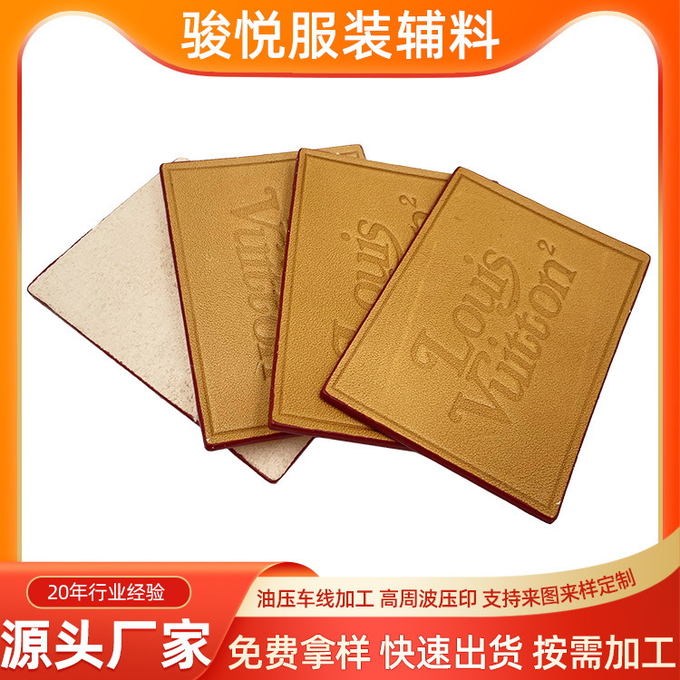 东莞真皮皮标皮牌定制牛仔裤腰标牌帽子皮牌服装辅料车缝线油边厂