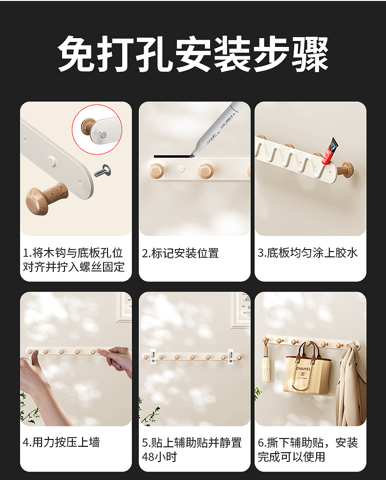 ✅北欧原木挂钩多功能墙上收纳ins排钩粘钩门后衣帽创意挂衣