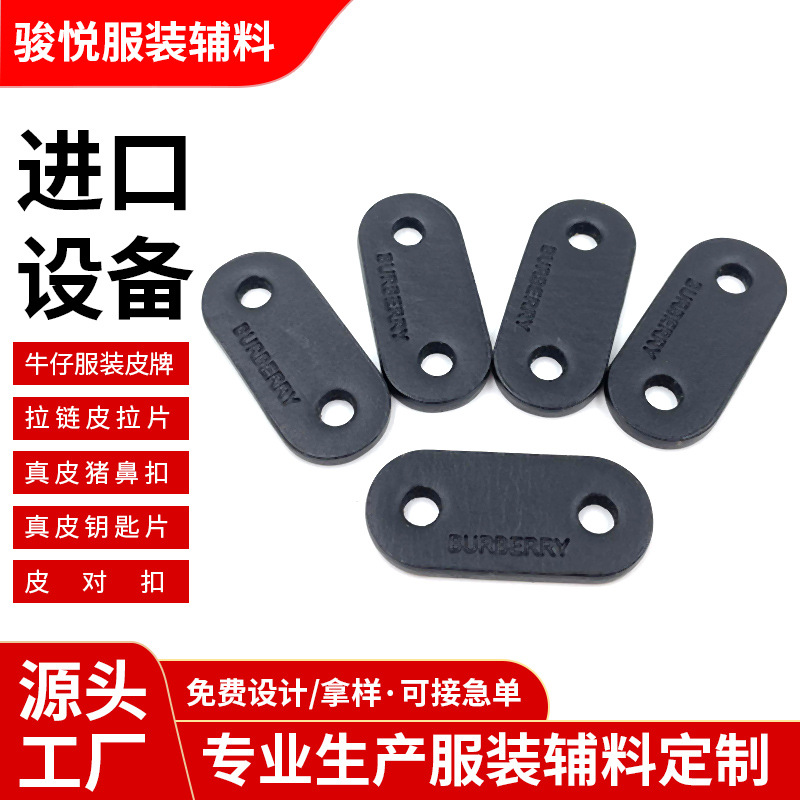 广东定制加厚树膏皮猪鼻扣 风衣双孔扣服装皮标油边热压款式多样