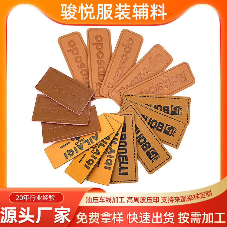 PU皮标皮牌定做激光电压印LOGO牛仔裤腰牌PU皮标服装箱包标
