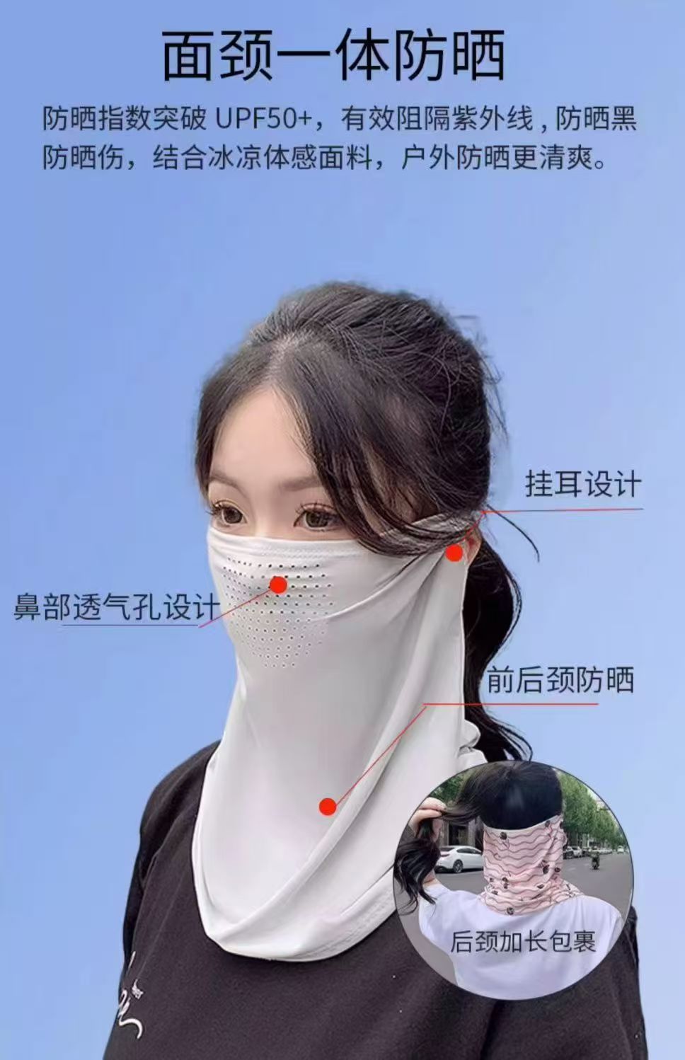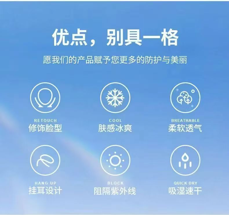 夏季防晒面罩。冰丝面罩